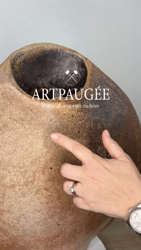 Réalisé en 1978, ce vase lentille illustre parfaitement son style : forme épurée, texture riche et jeu subtil de lumière dans la matière. Ces caractéristiques qui en font une pièce très recherchée par les collectionneurs ont donné lieu à une belle surprise lors de notre vente aux enchères du 27 mars 2025, une adjudication à 16 000€ fi.
