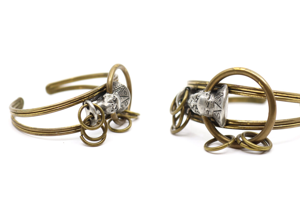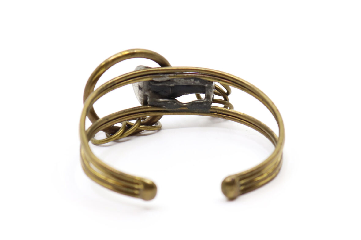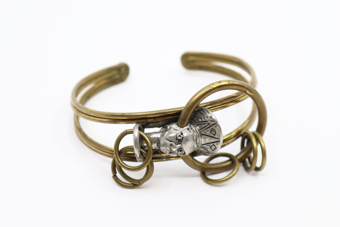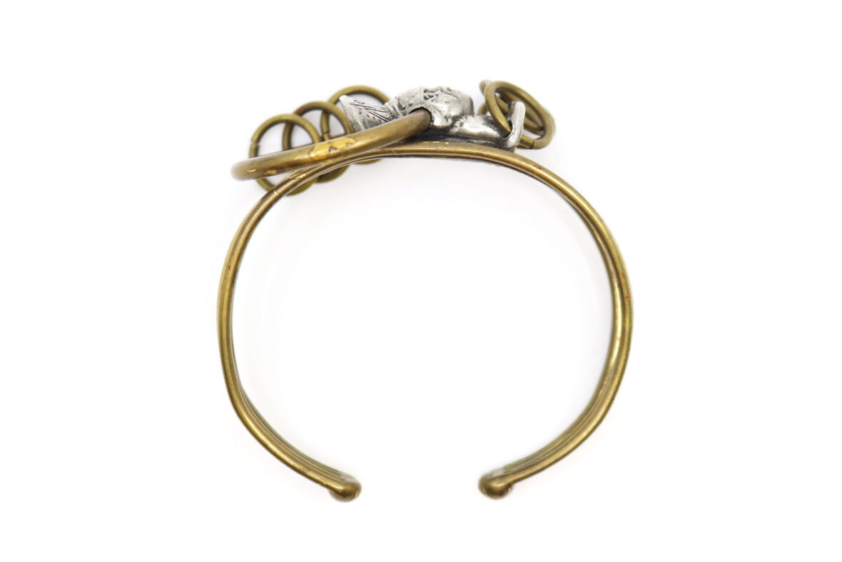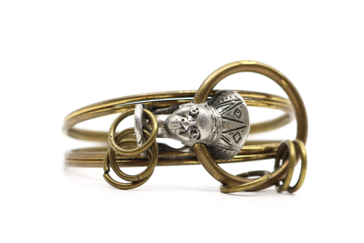 Bracelet jonc en bronze et fer à décor d’une tête au centre.