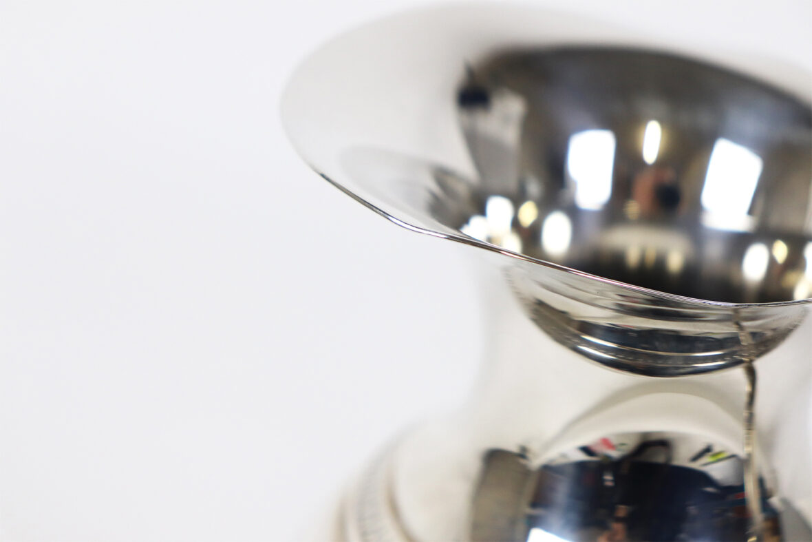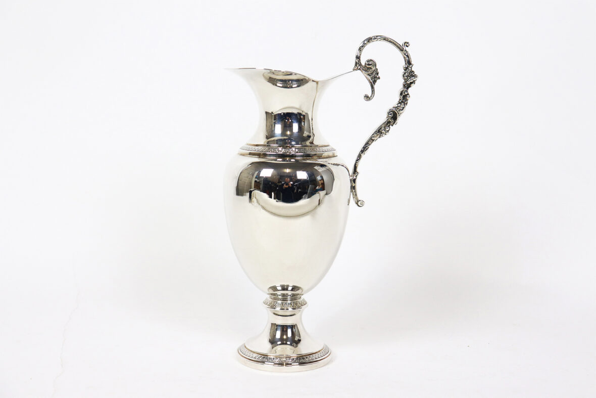 Aiguière en métal argenté de forme balustre.