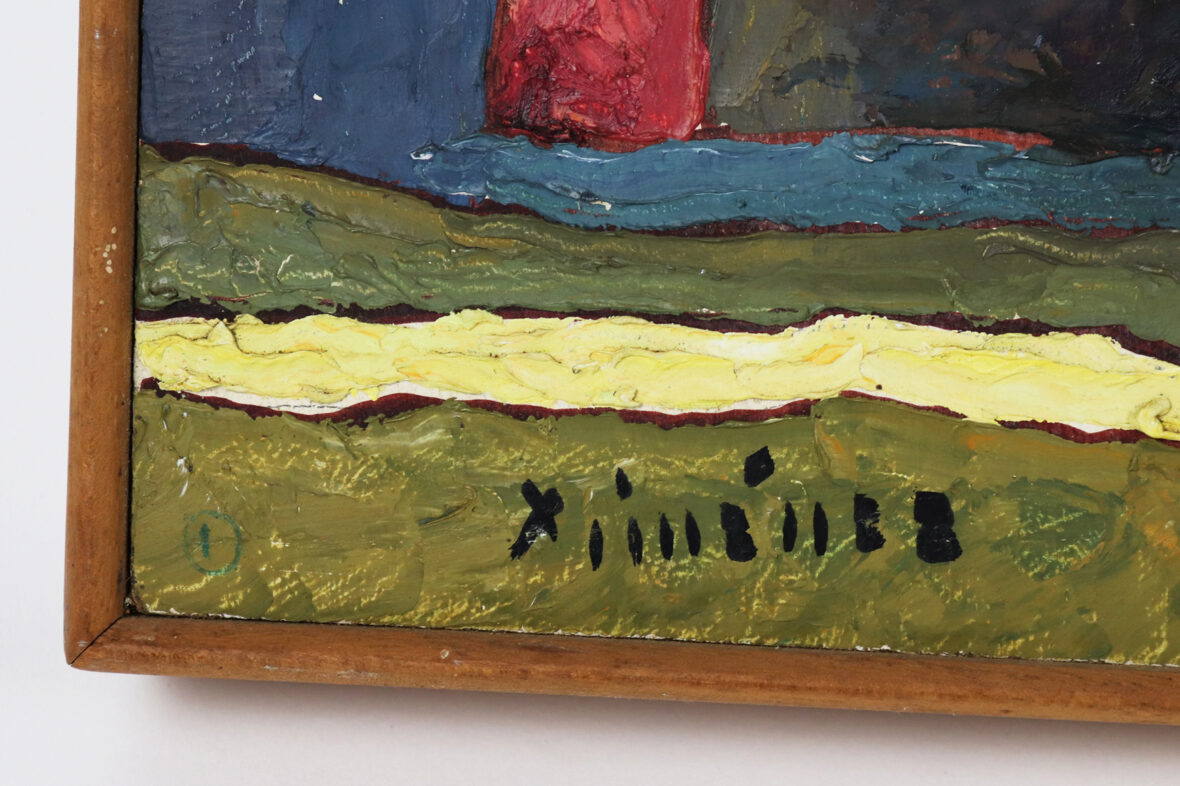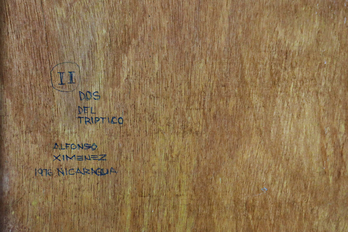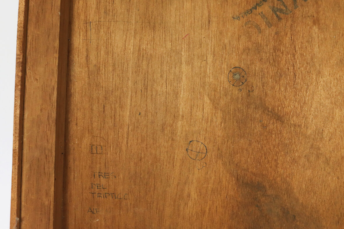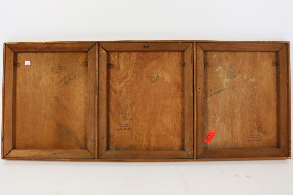 Trois huiles sur panneau de bois montées en triptyque. Signé en bas à gauche.