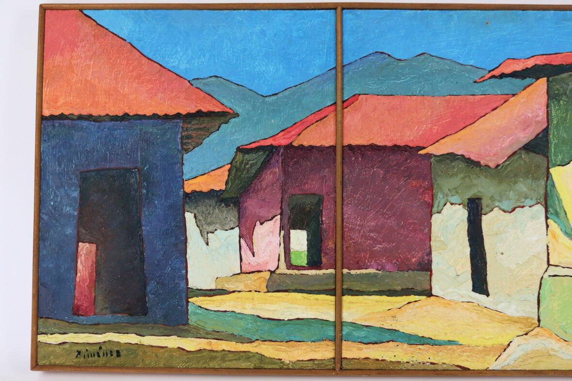 Alfonso XIMENEZ (1948) Le village Trois huiles sur panneau de bois montées en triptyque….