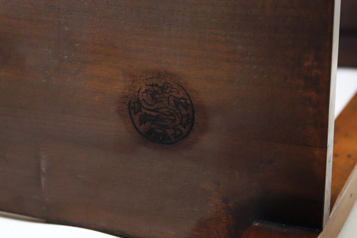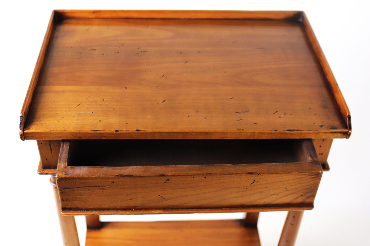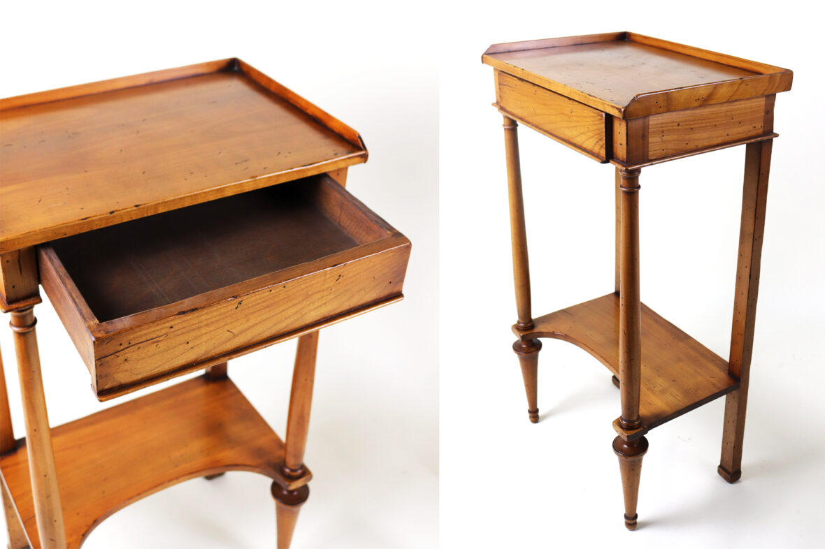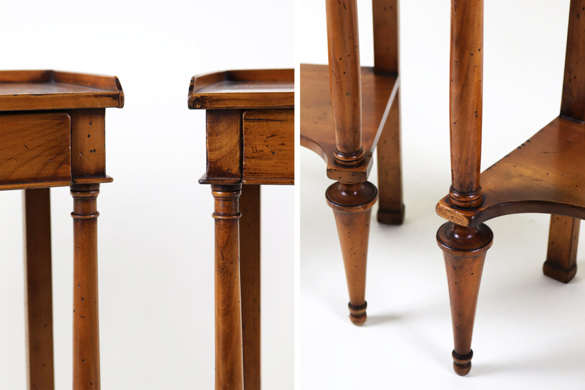 Paire de chevets en bois et placage de bois de style Directoire, ouvrant par un tiroir en ceinture. Le piètement réuni par un plateau d’entretoise. Marque à la Salamandre sous le plateau d’entretoise.