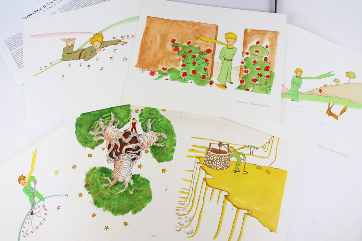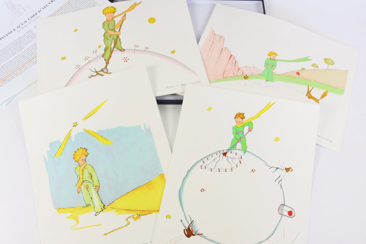 20 lithographies grand format tirées d’après les plus beaux dessins originaux de Saint-Exupéry. Exemplaire n°1455 – Edition Michel de Seguins.