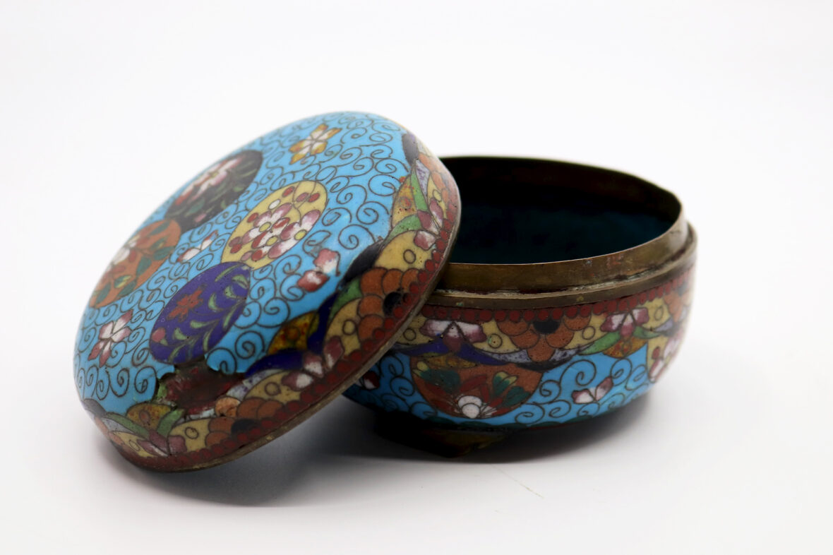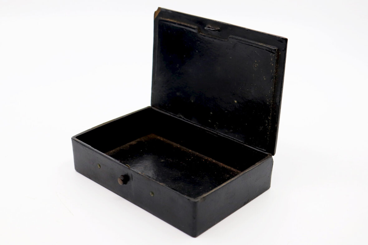 On y joint une petite boite en bois peinte à décor de scène animée.