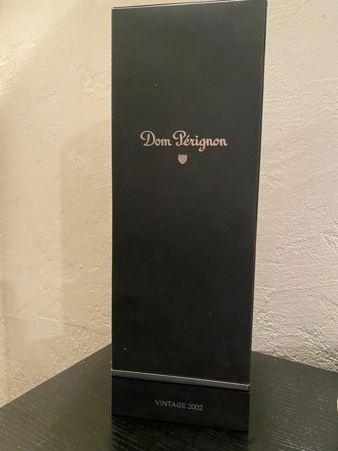 Bouteille de Champagne Dom Pérignon 2002 dans son coffret.