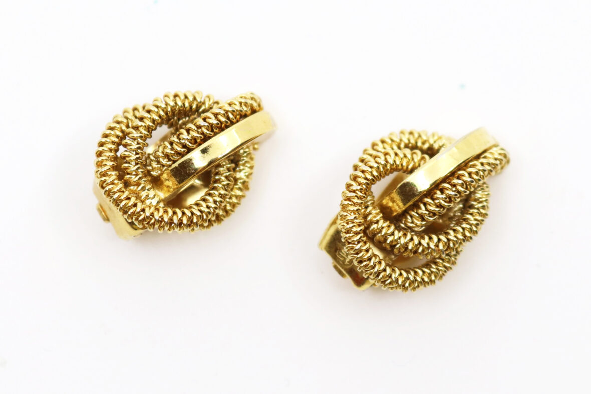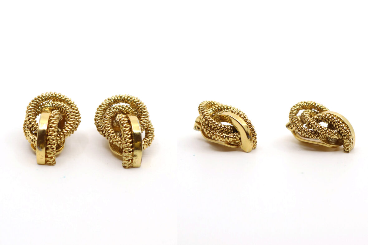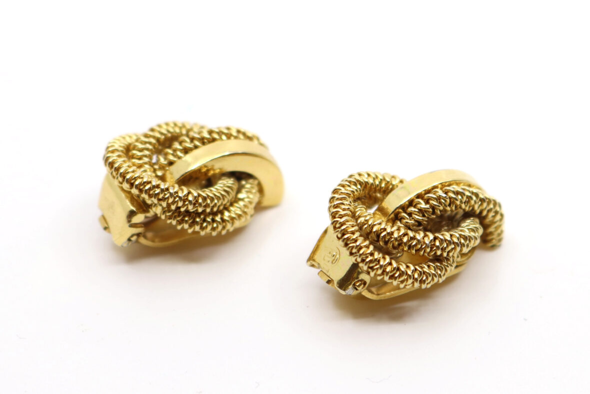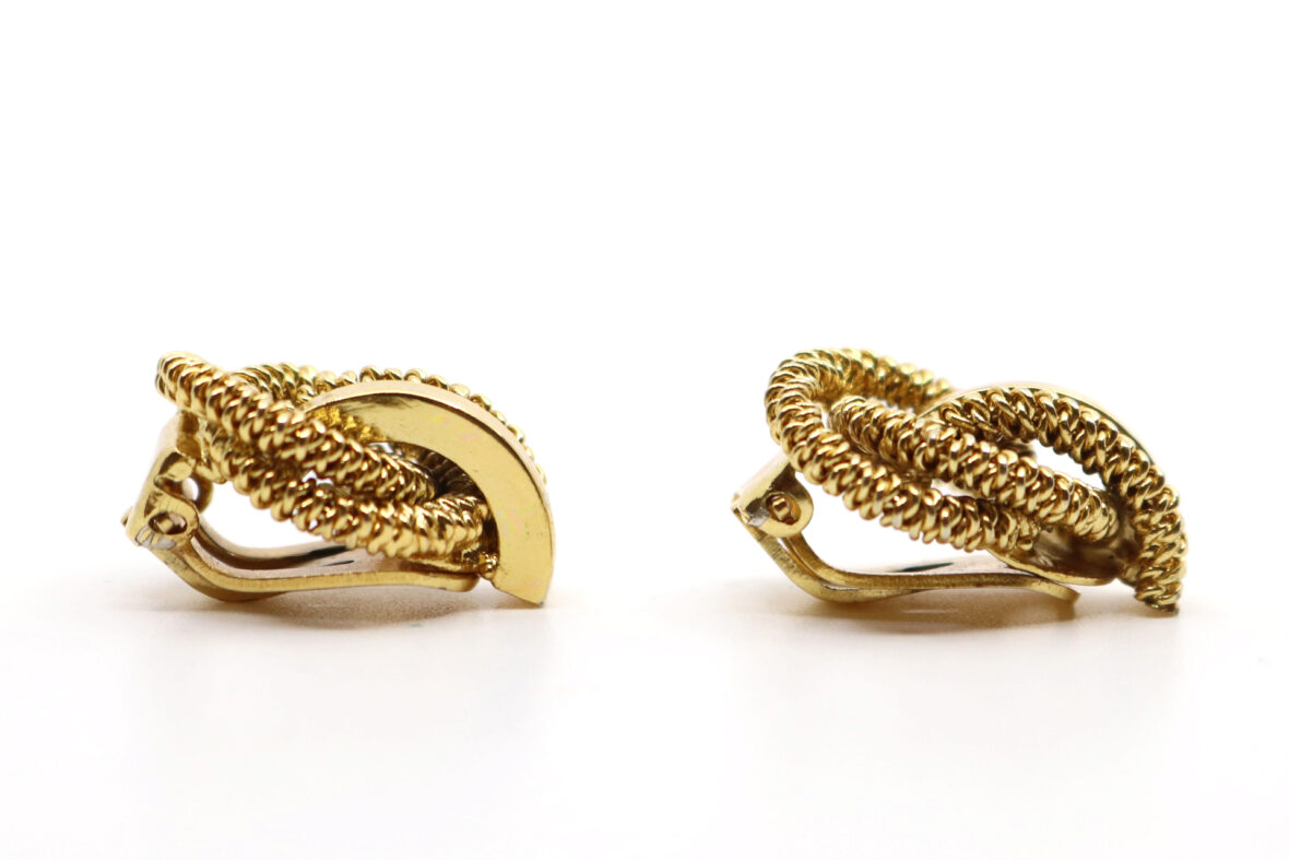 BOZART, Italie Paire de clips d’oreilles en métal doré à décor d’entelacs.