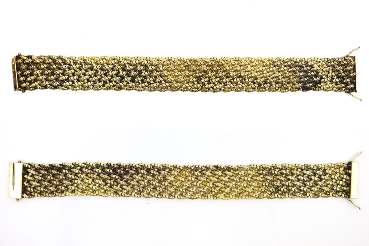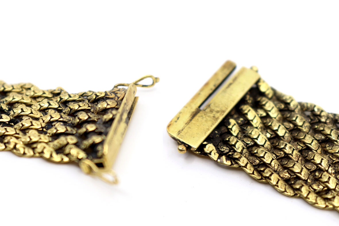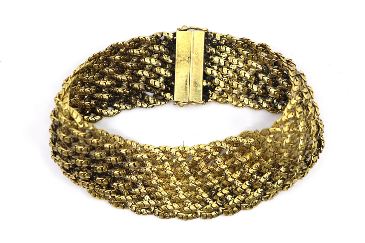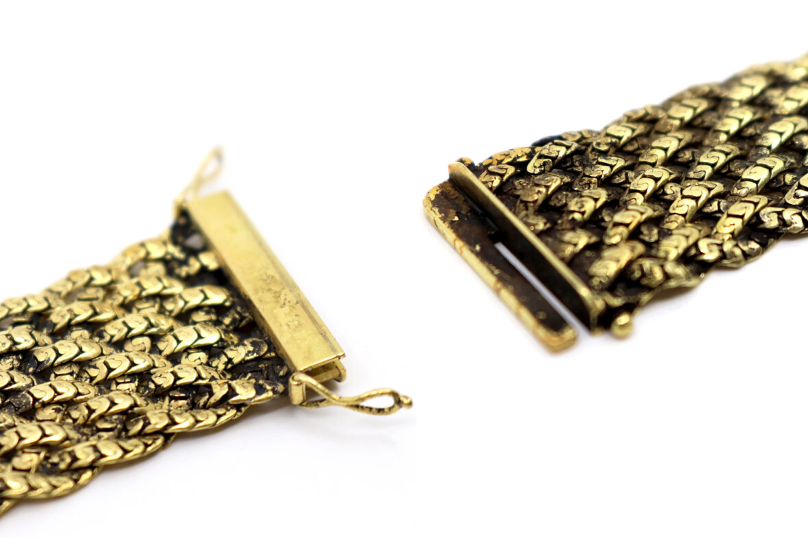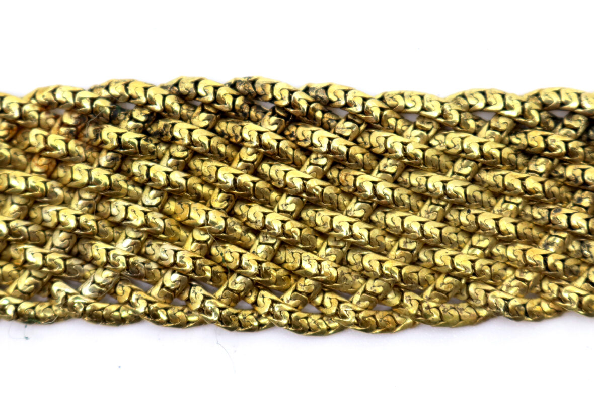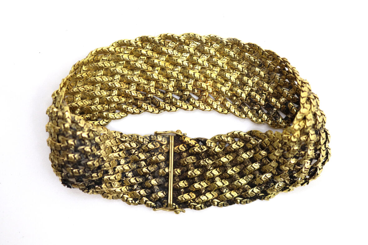 Bracelet en or à mailles plates articulées. Poids : 63,7 g