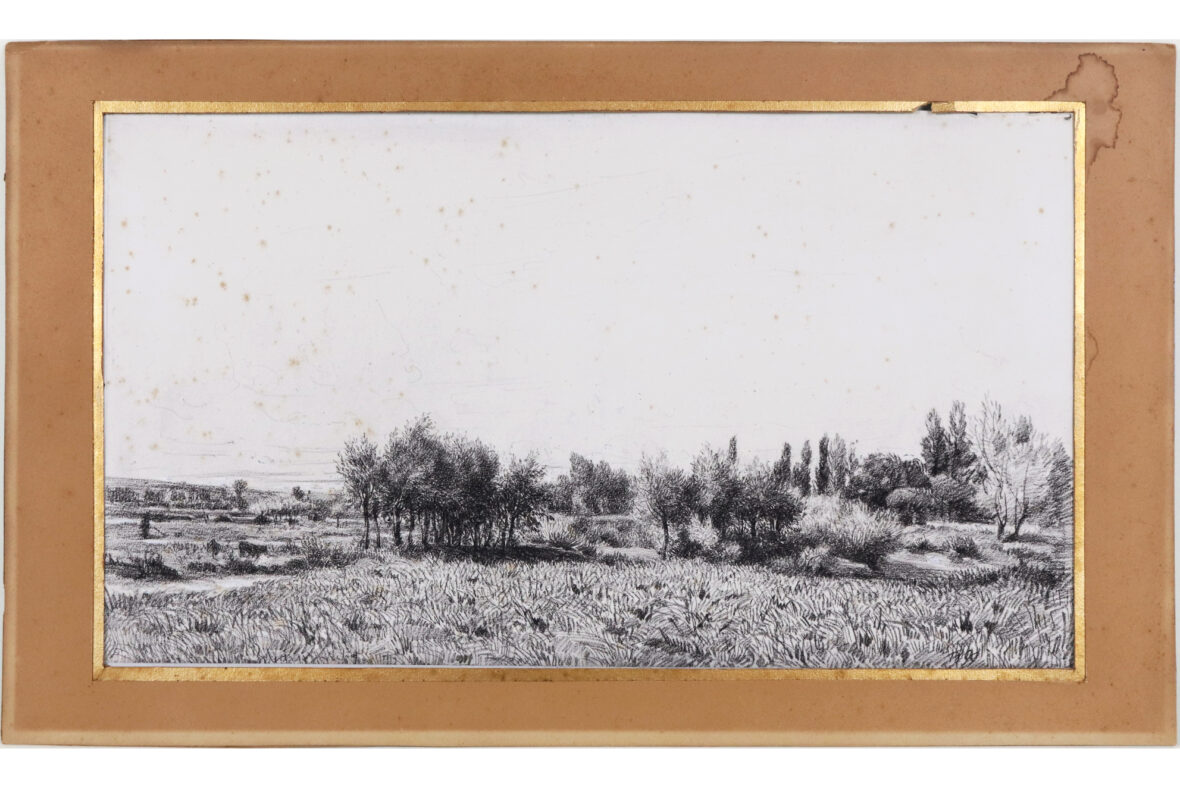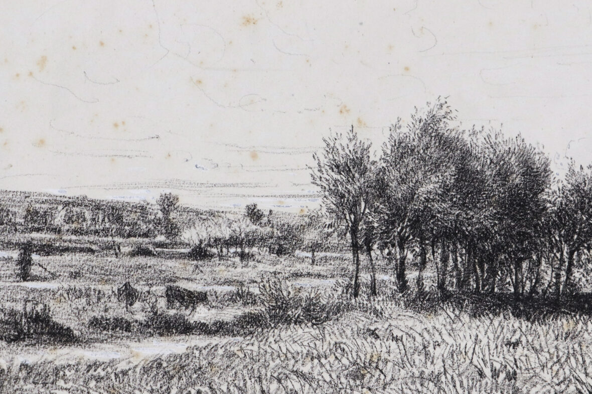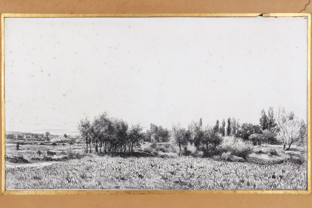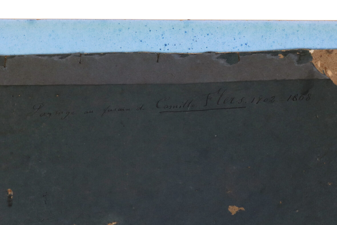 Camille FLERS (1802-1868) Paysage Fusain sur papier. Haut. : 28 cm – Larg. : 48,5…