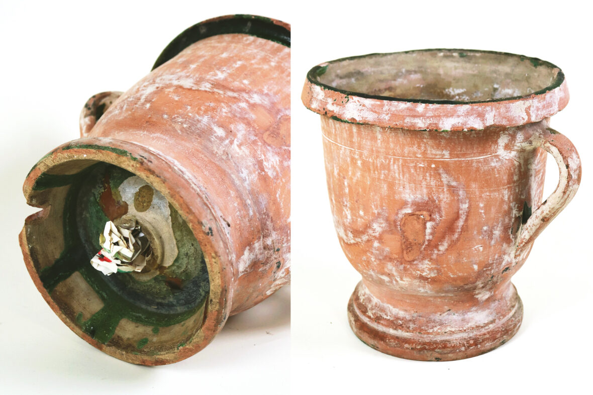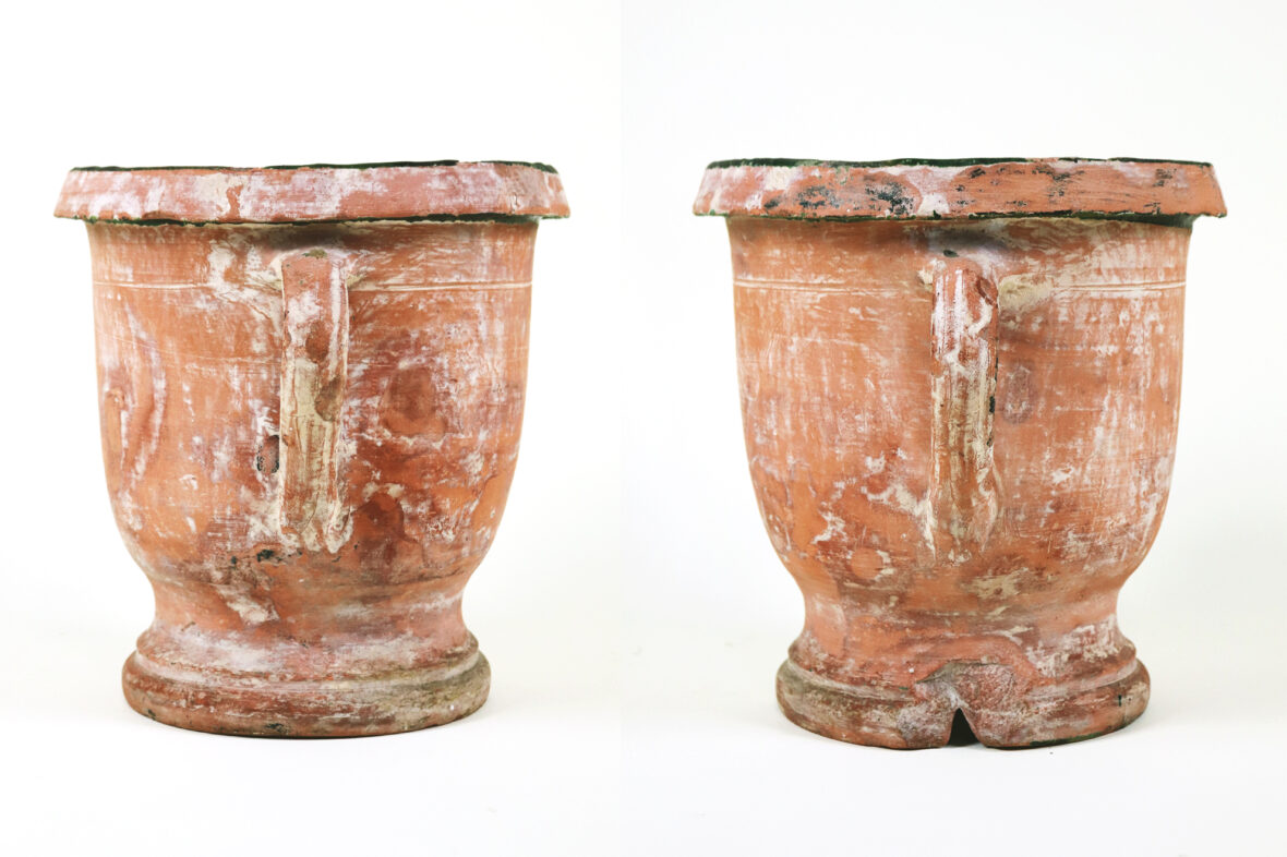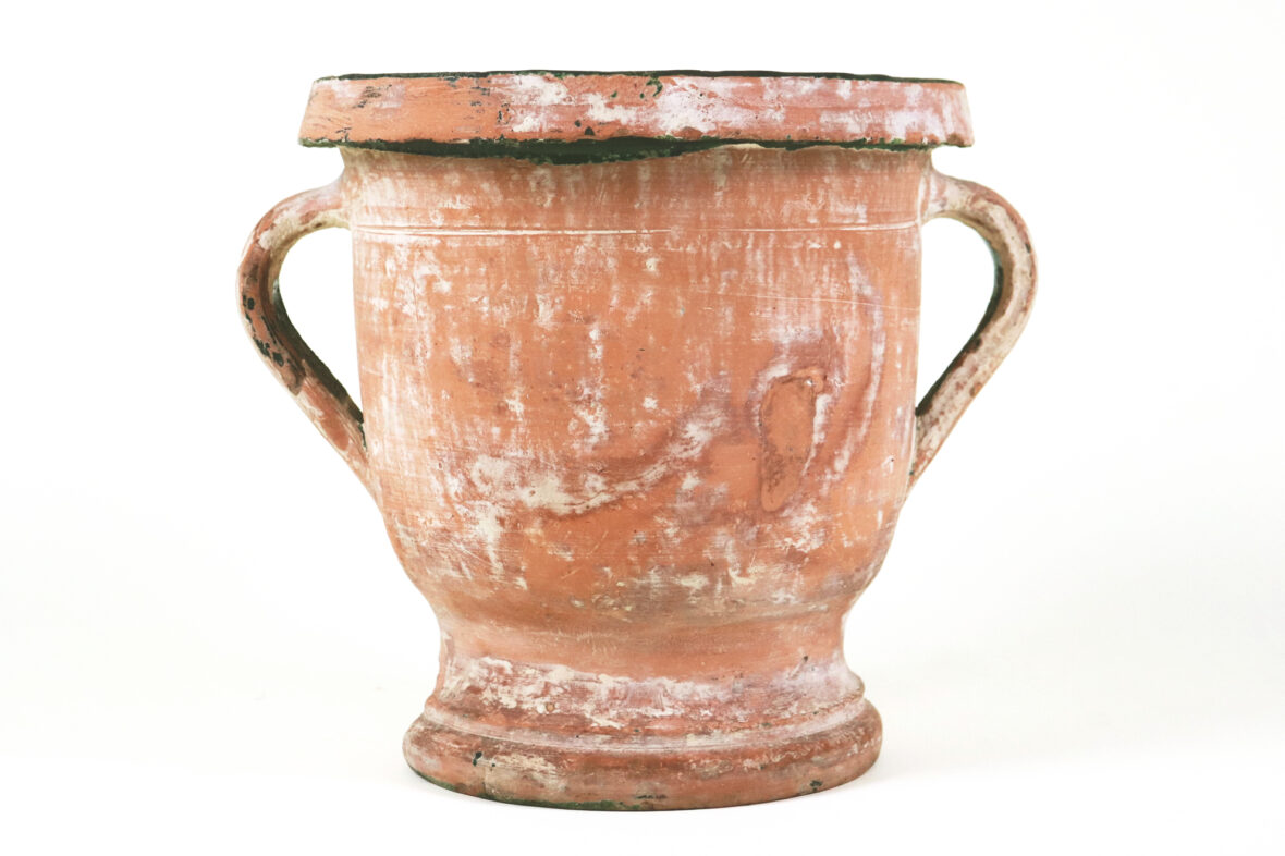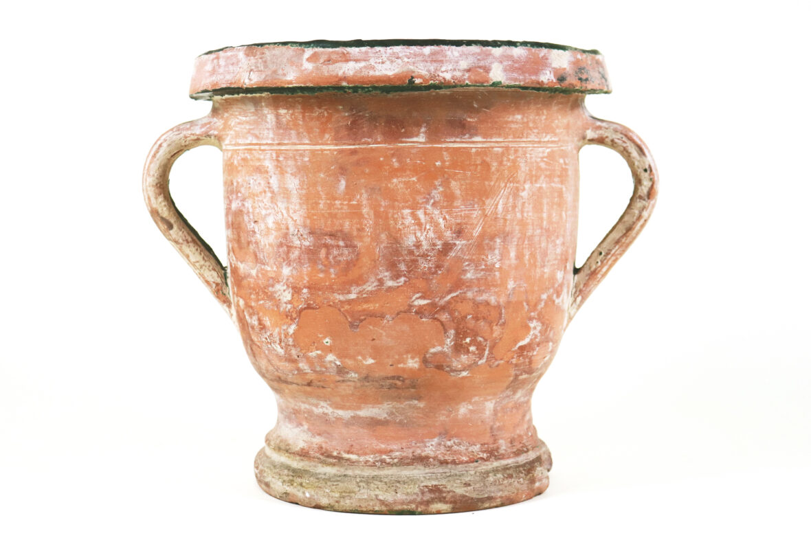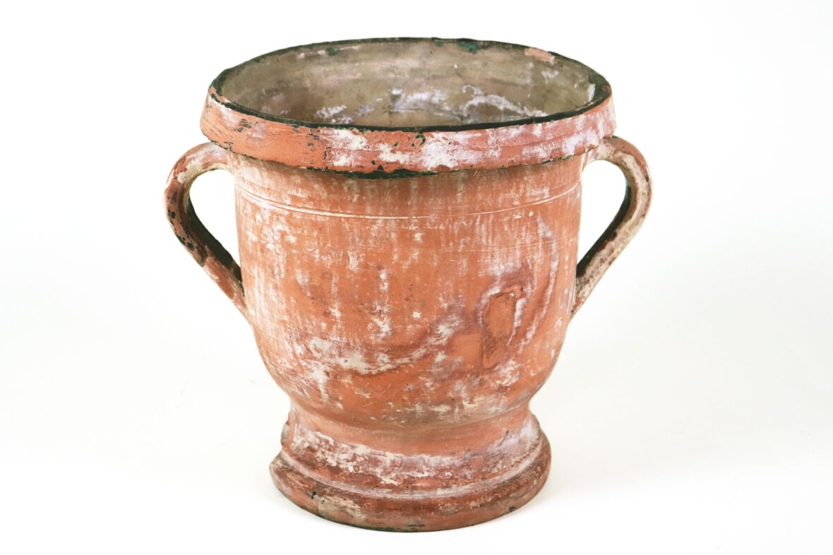 CASTELNAUDARY Jardinière à anses en terre cuite anciennement vernissée vert. (Quelques…