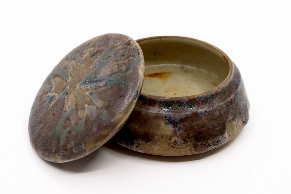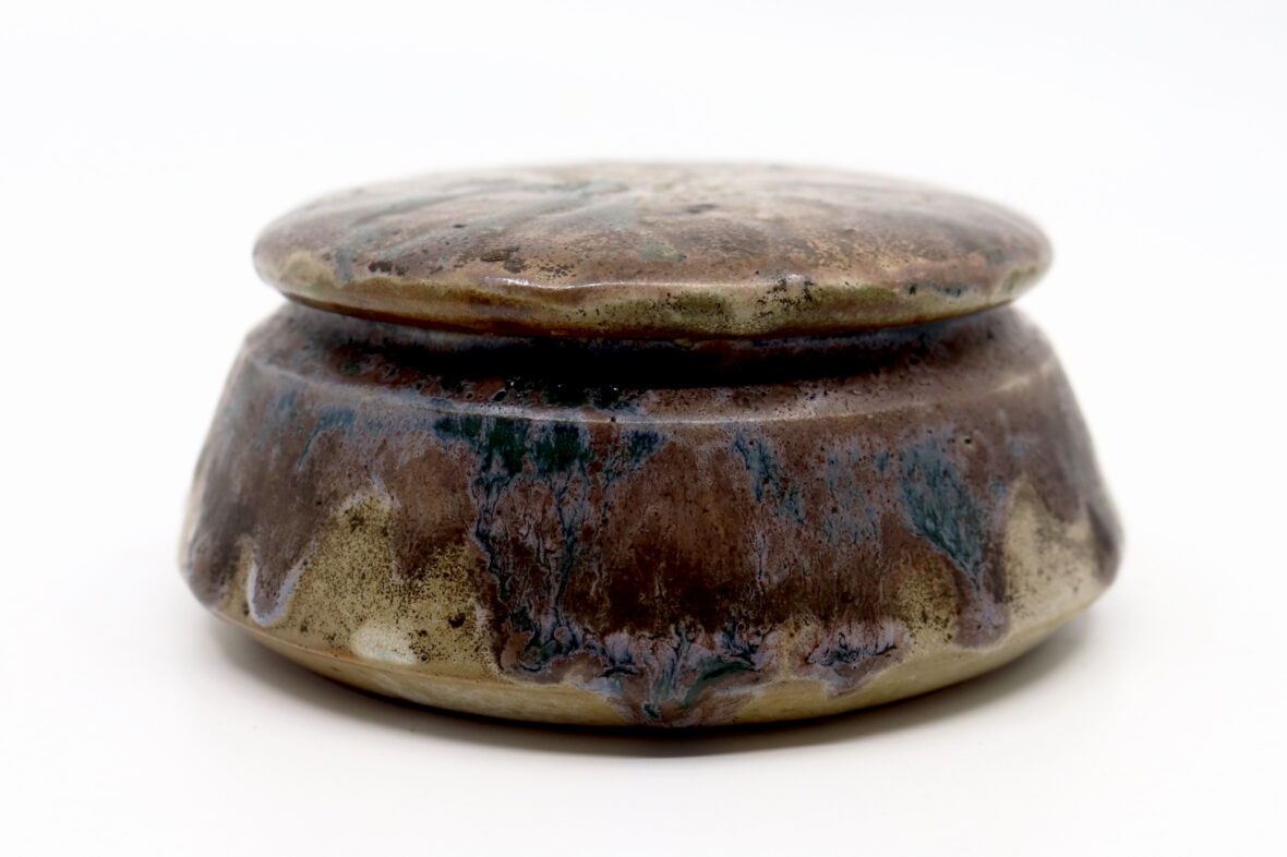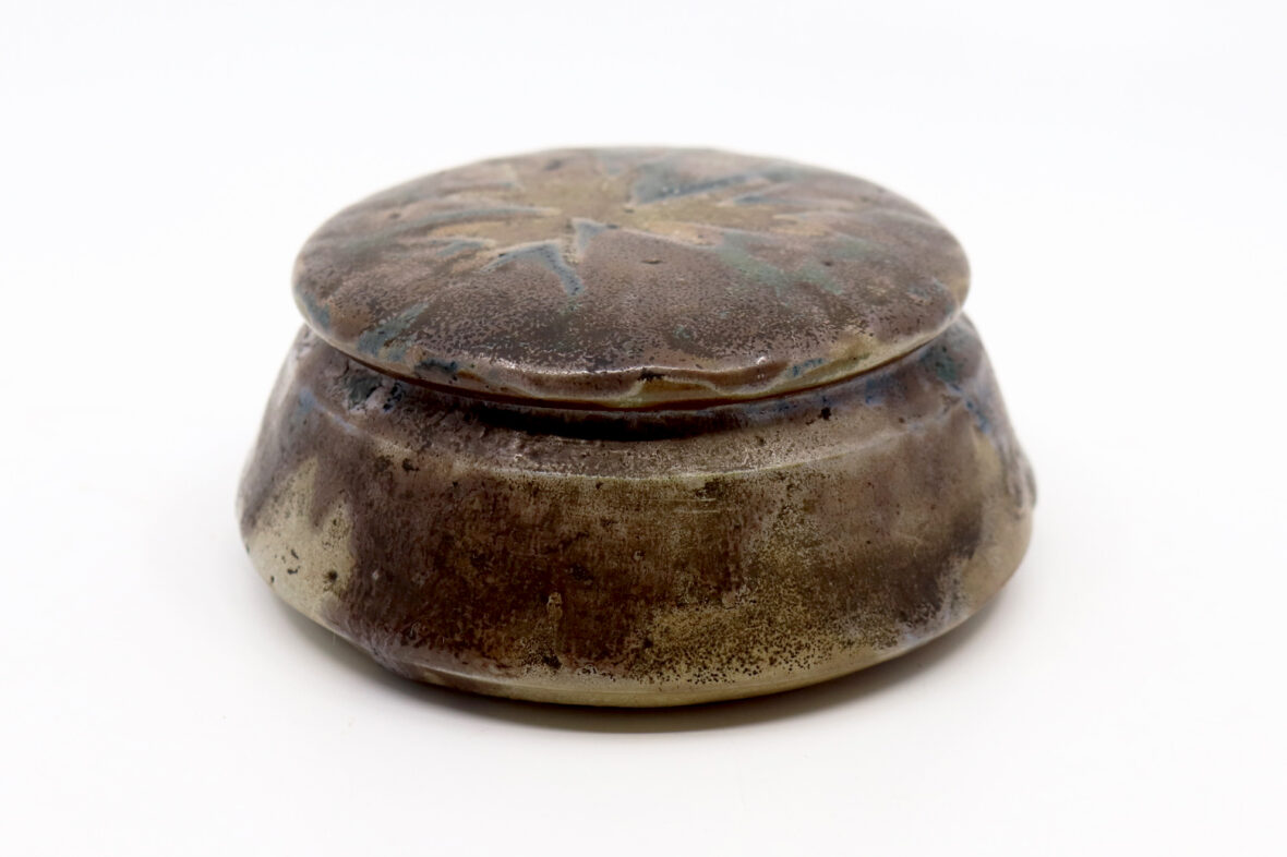 Bonbonnière en grès émaillé. Cachet creux sous la base.