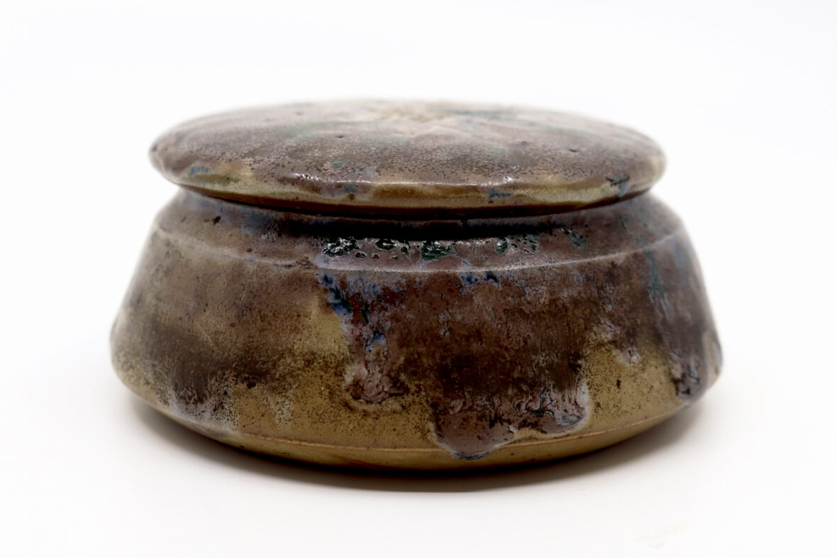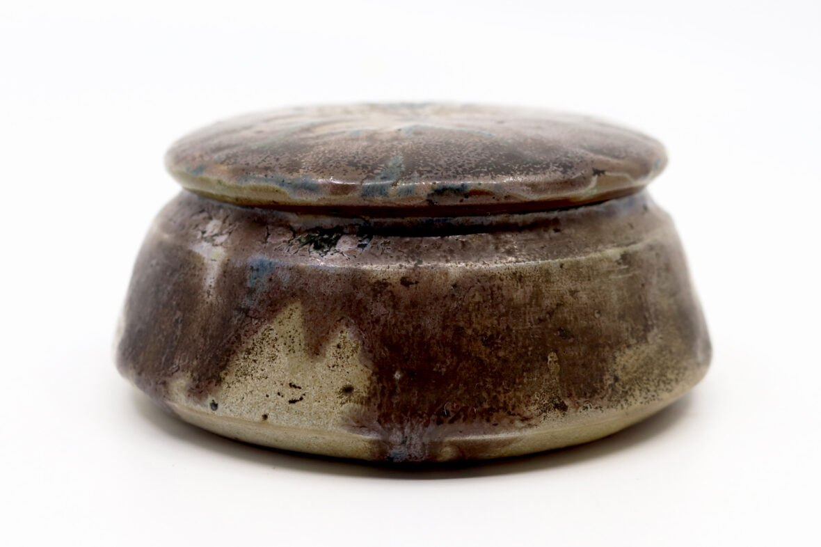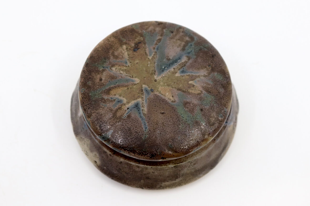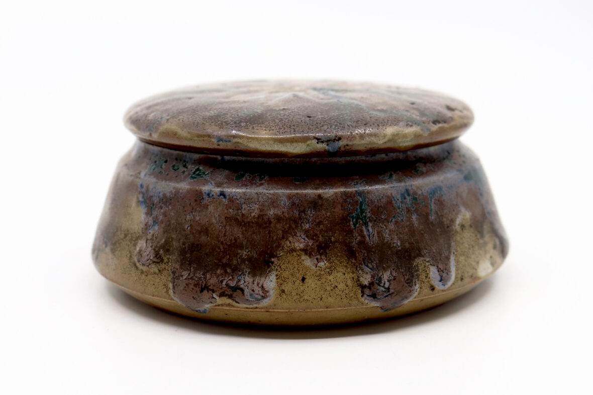 Bonbonnière en grès émaillé. Cachet creux sous la base.