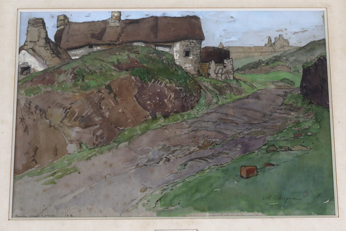 Aquarelle et encre. Signé en bas à droite. Titré et daté 1912 en bas à gauche.