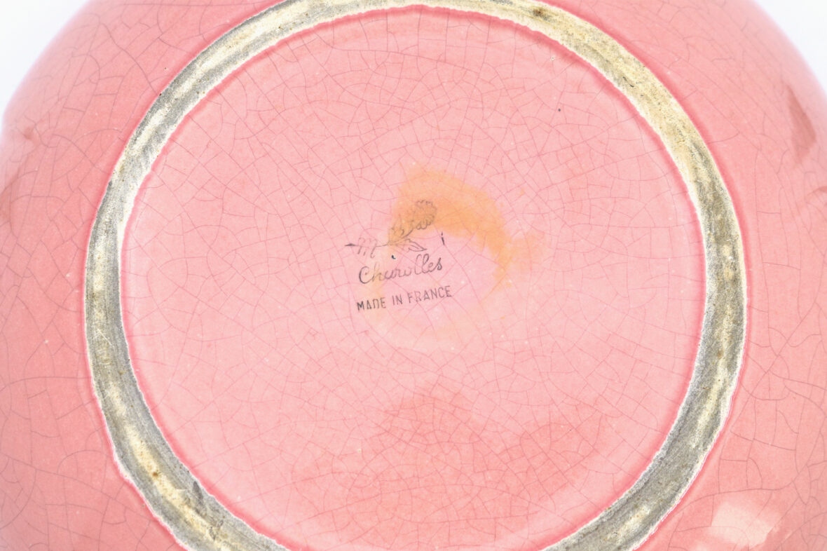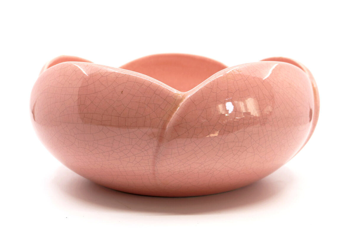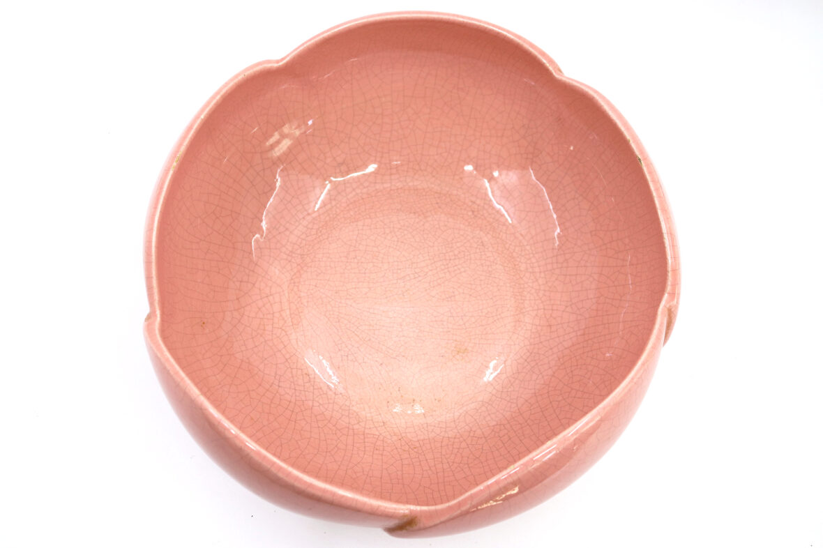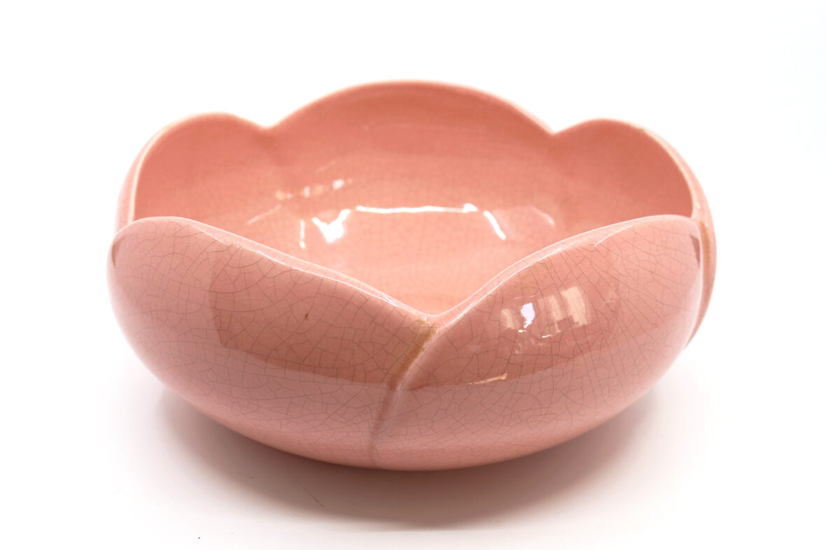 CHAROLLES Saladier en faïence émaillée rose en forme de fleur. Diam. : 26 cm