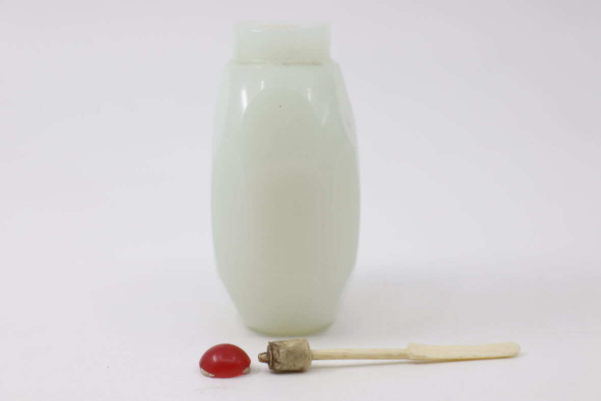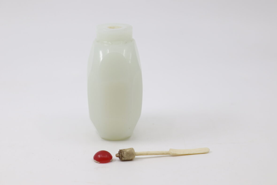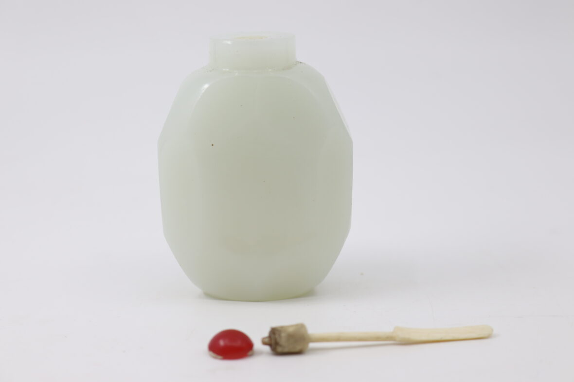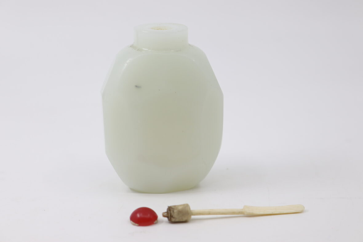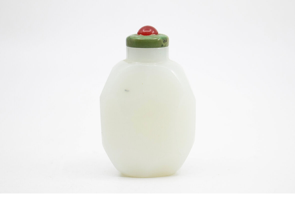 CHINE, fin du XIXe siècle Tabatière à pans coupés en verre opalin, le bouchon en