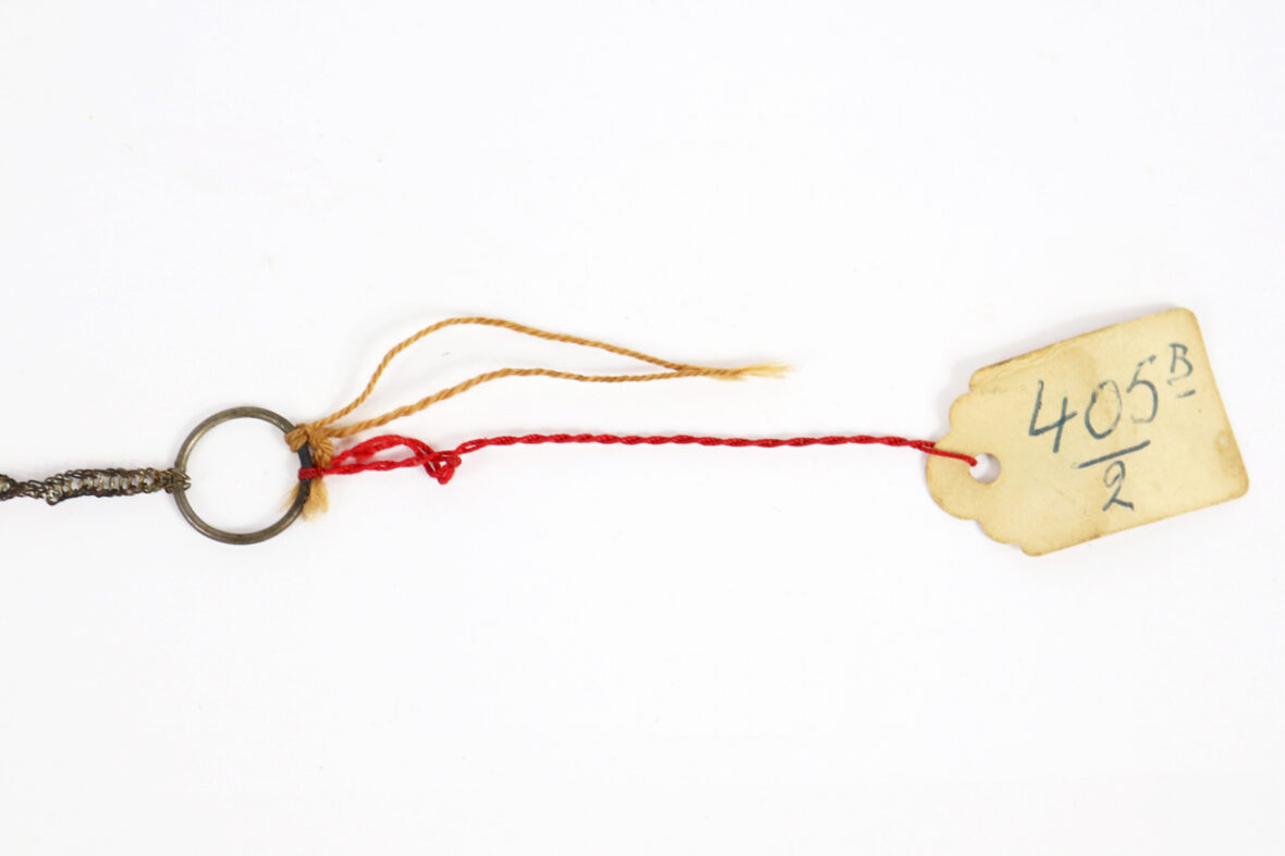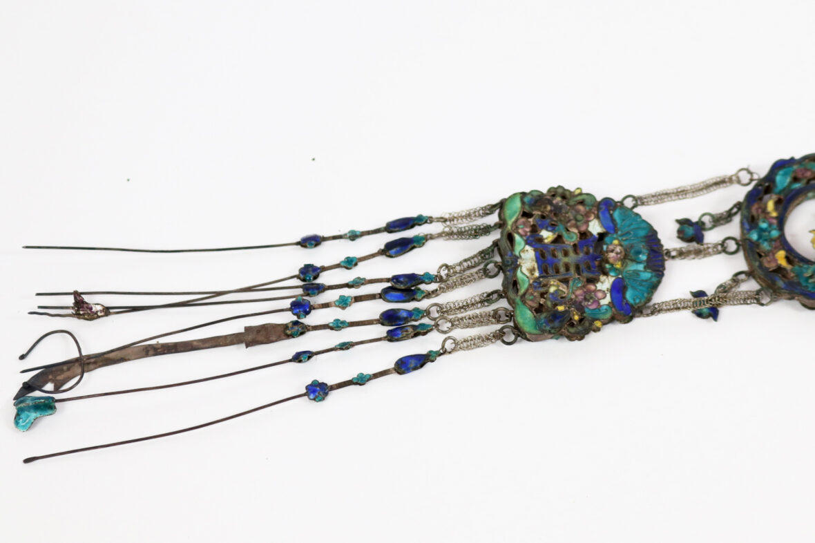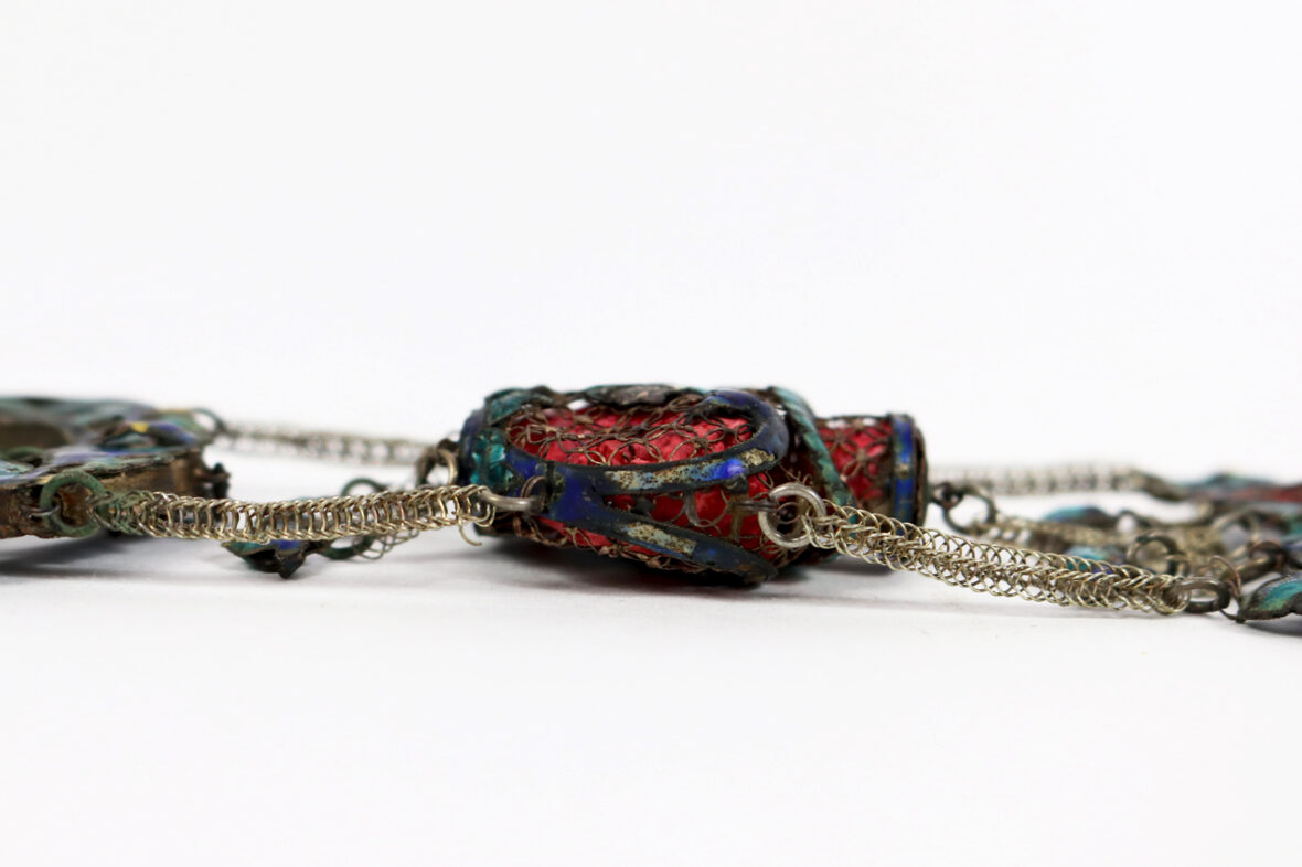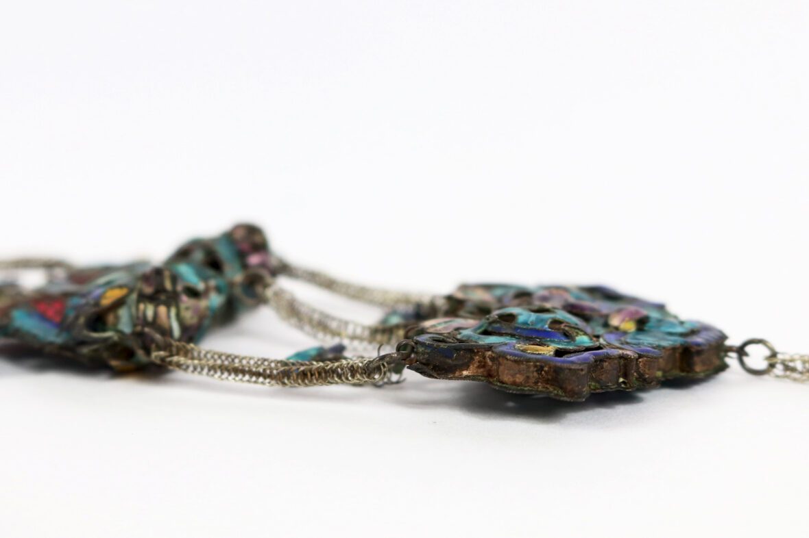 Très belle châtelaine à opium en métal à décor émaillé polychrome.