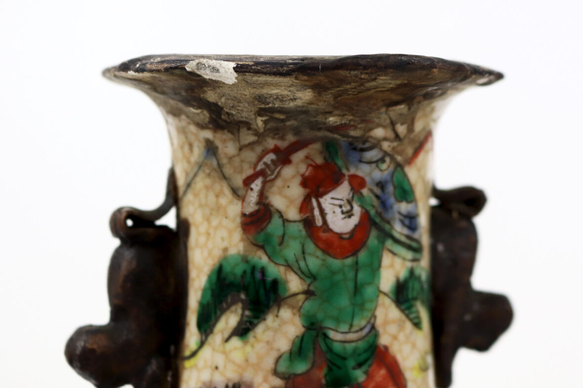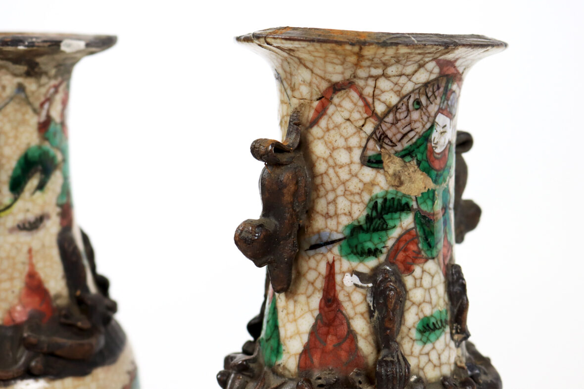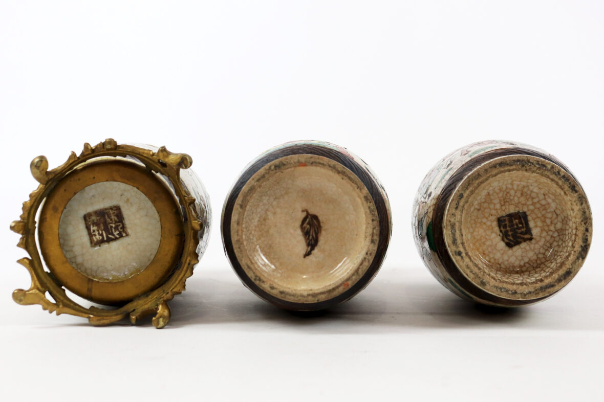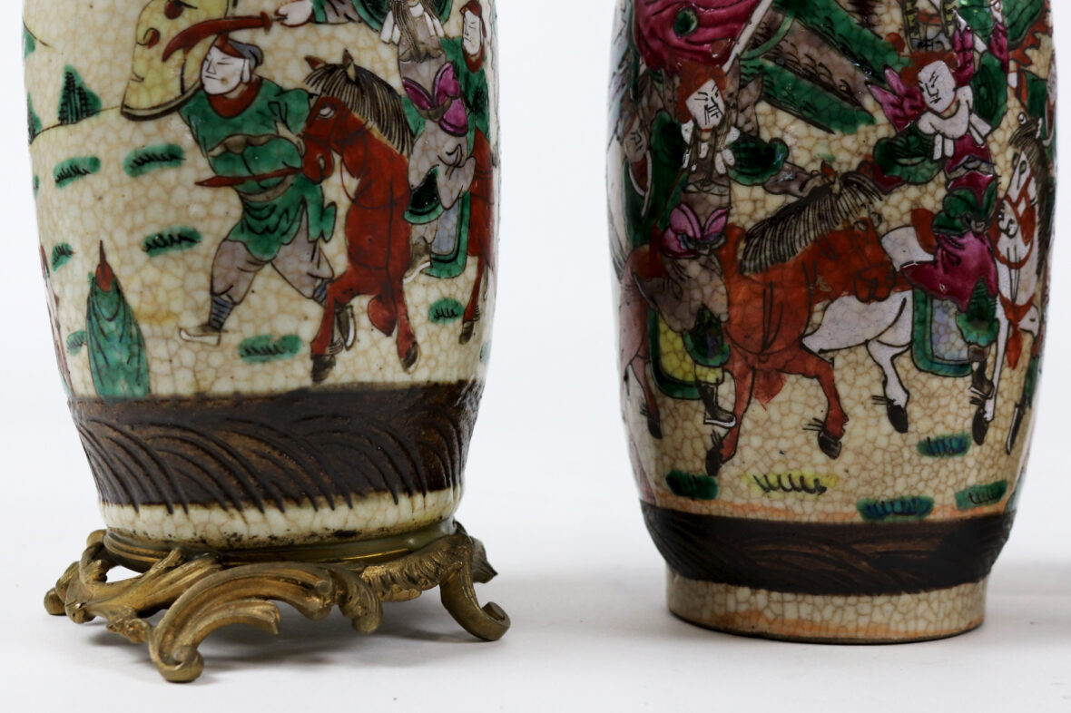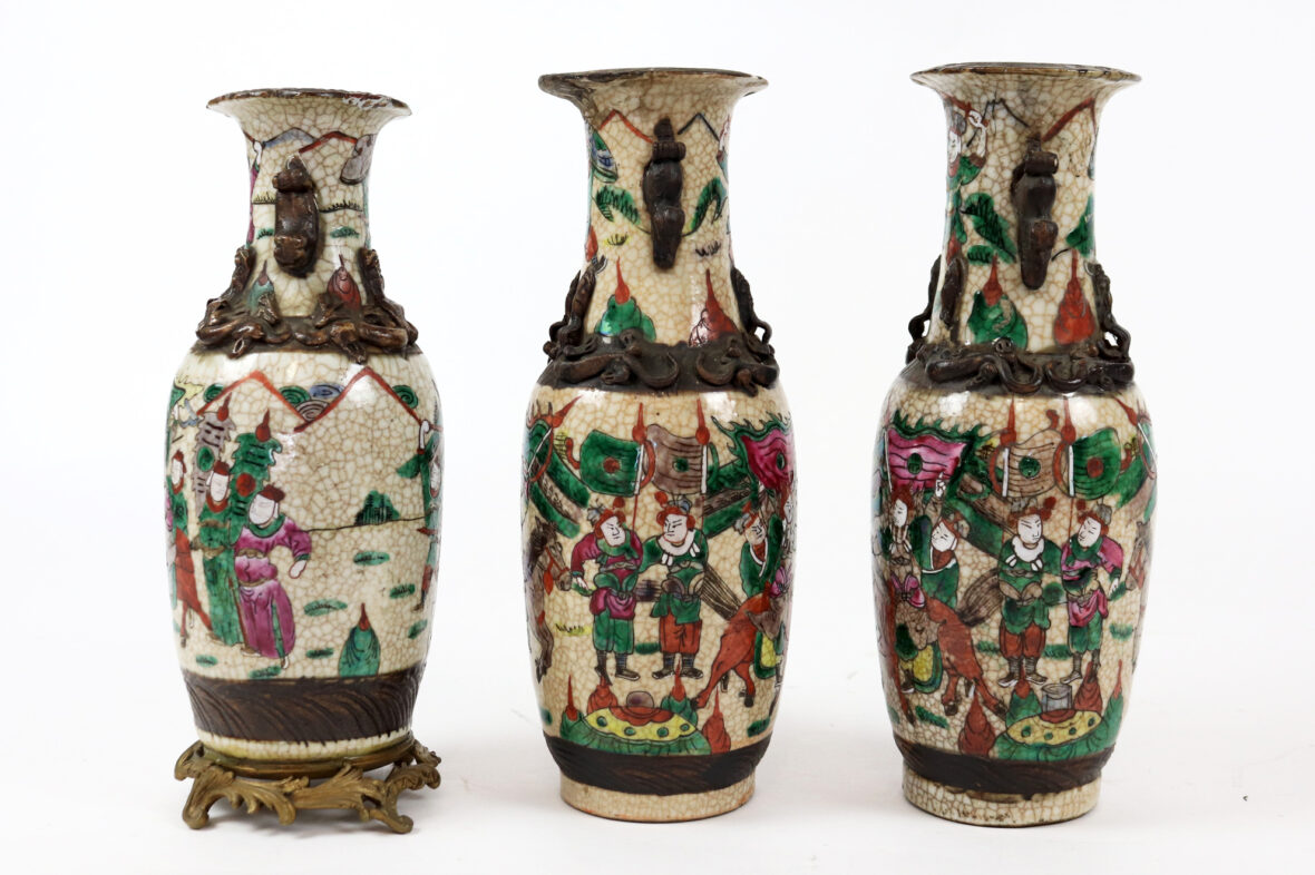 Ensemble de 3 vases en céramique à décor de scène de bataille.