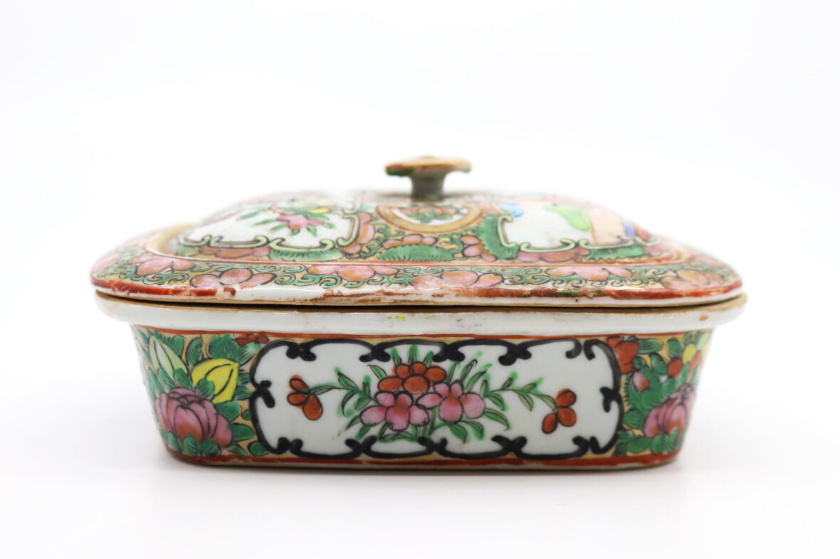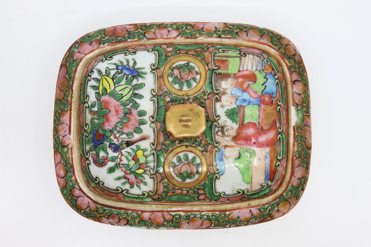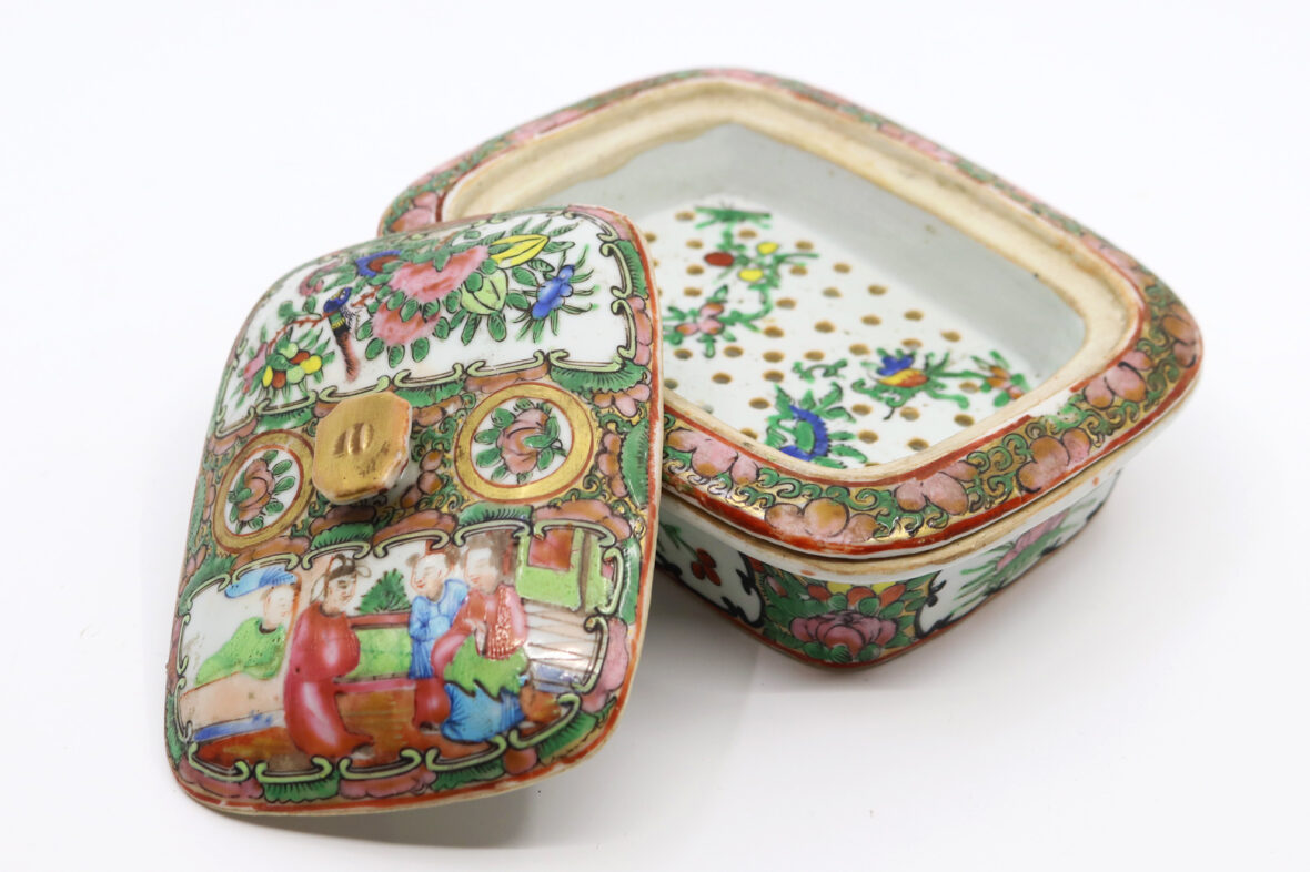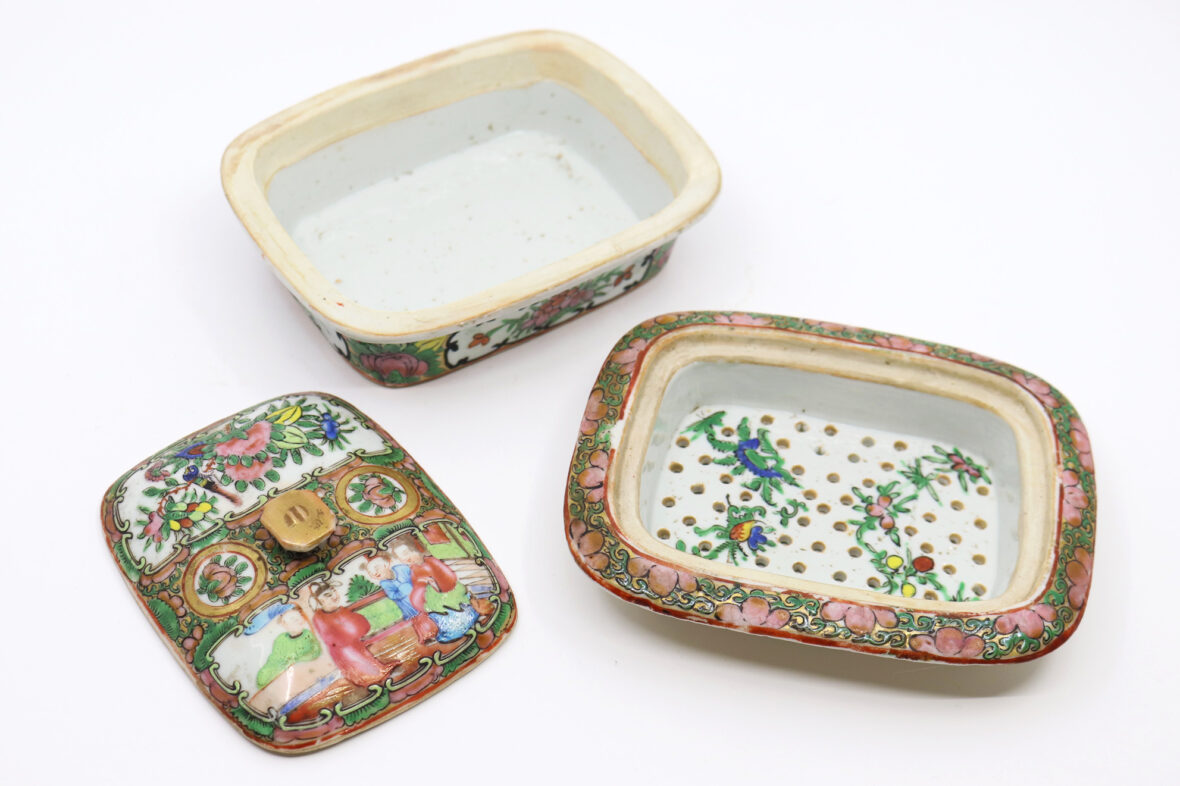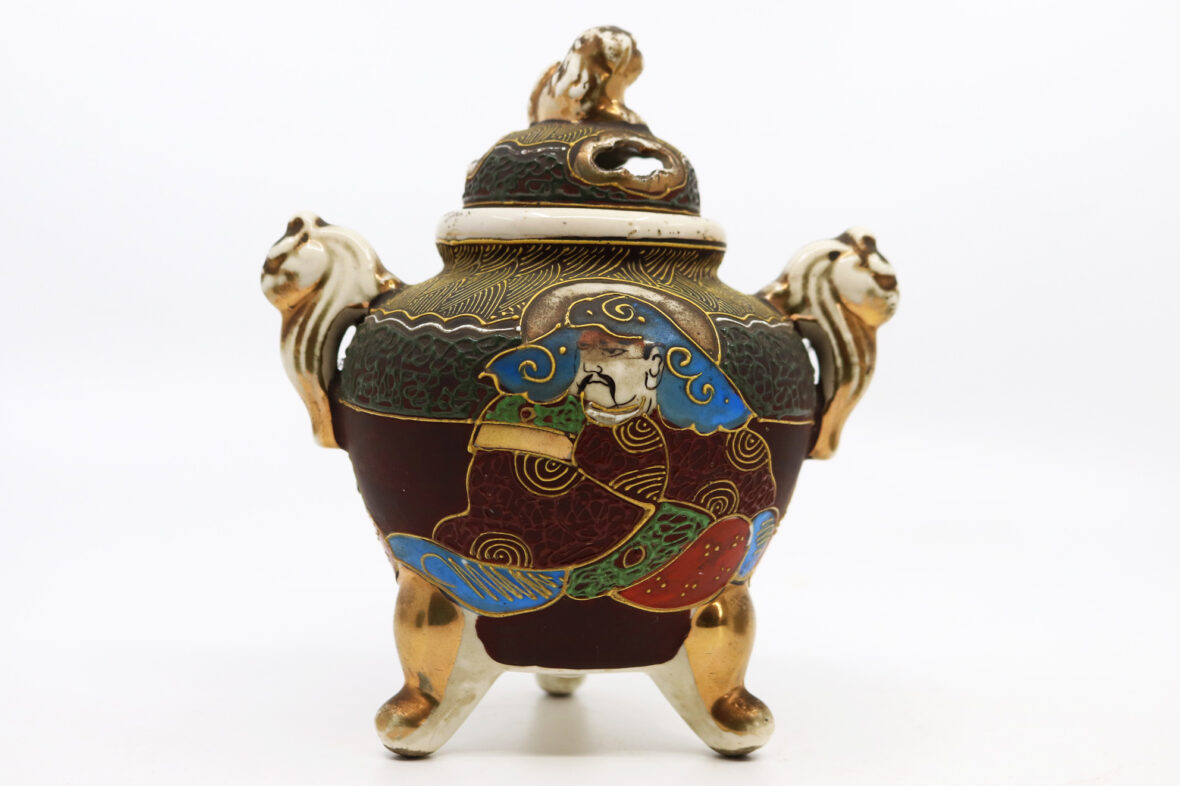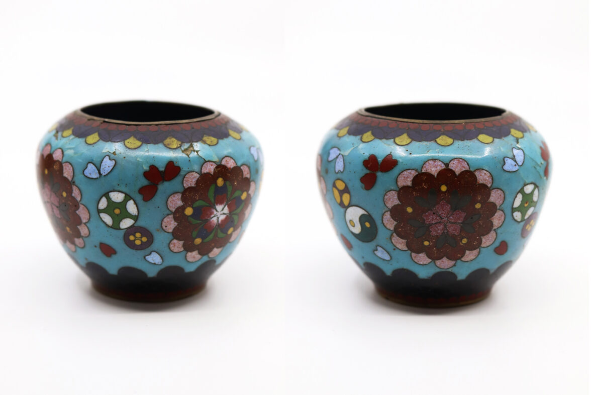 Ensemble comprenant un petit vase en émail cloisonné, une boîte à savon en porcelaine et un brûle parfum en faïence de Satzuma.