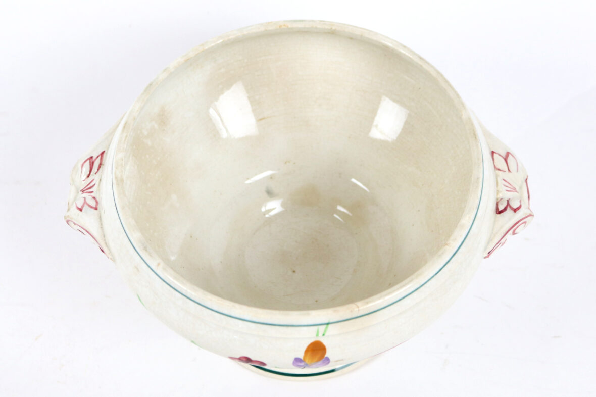 Soupière sur piédouche en faïence émaillée à décor de coq.