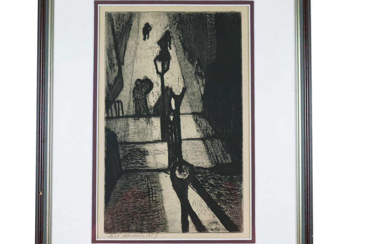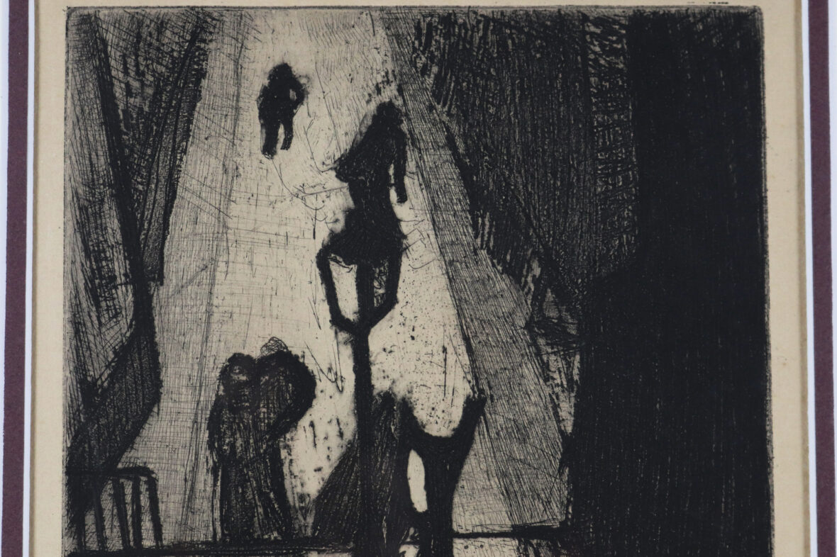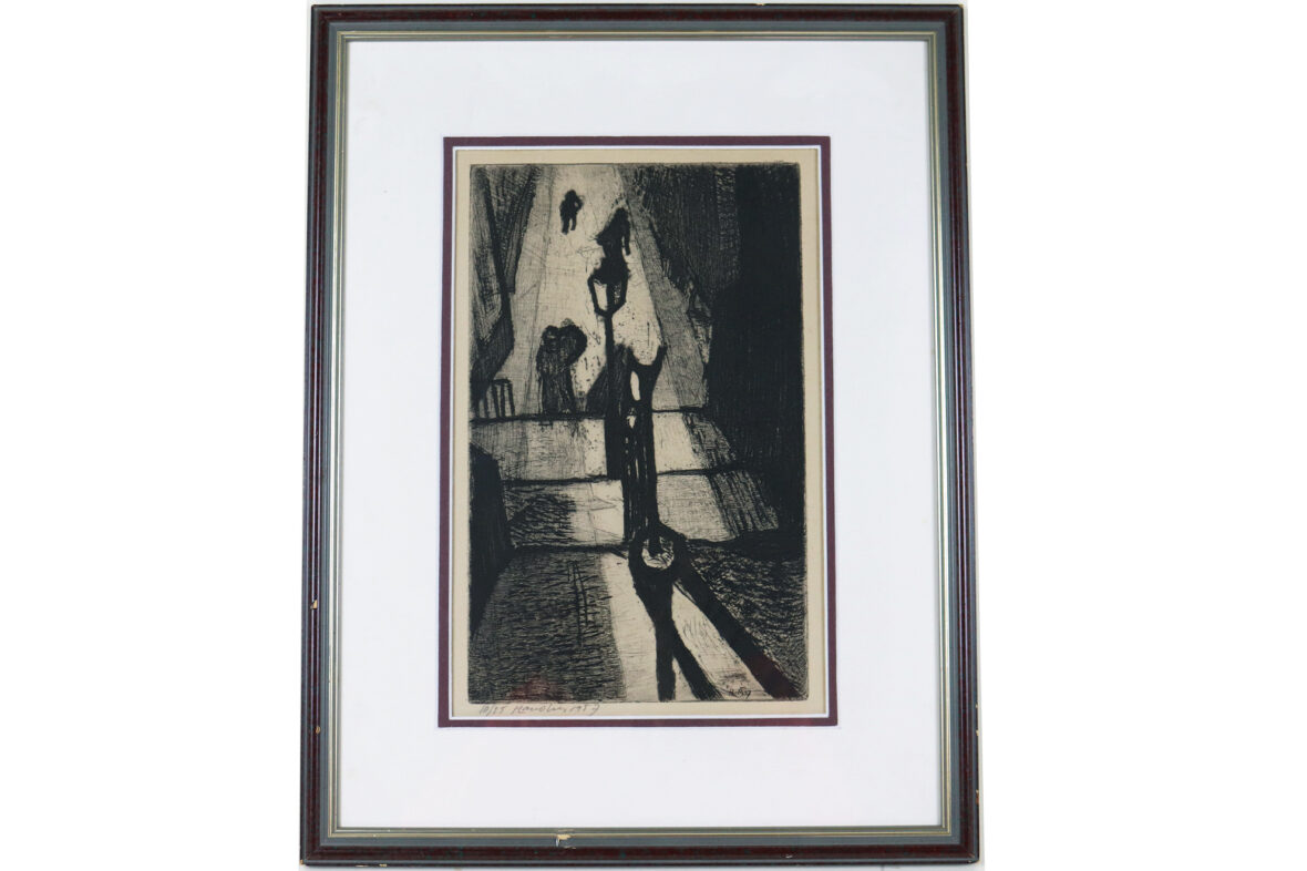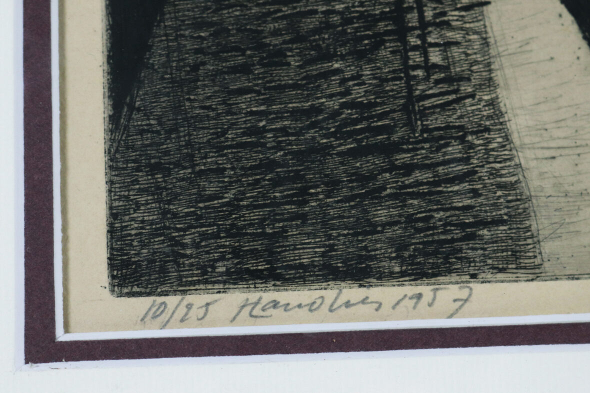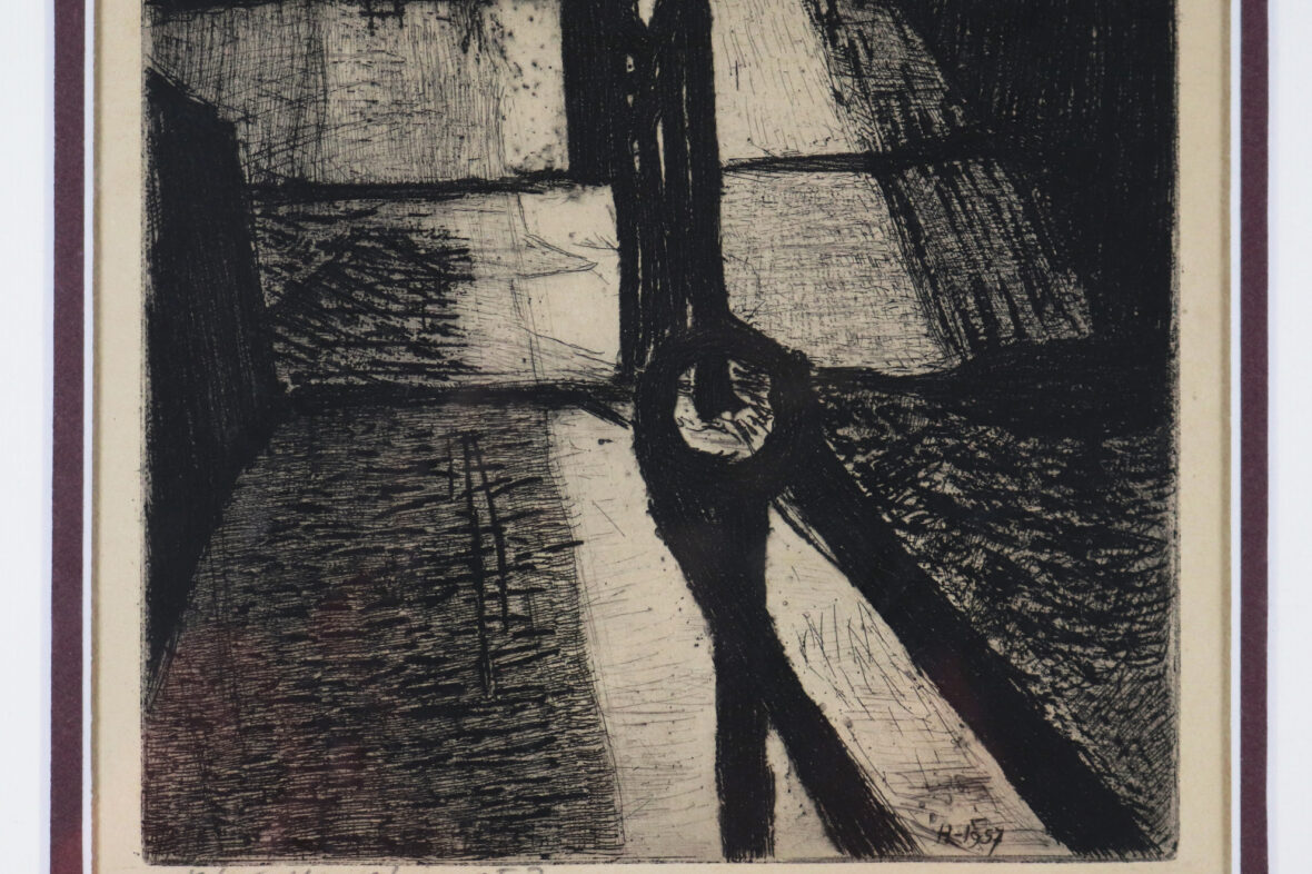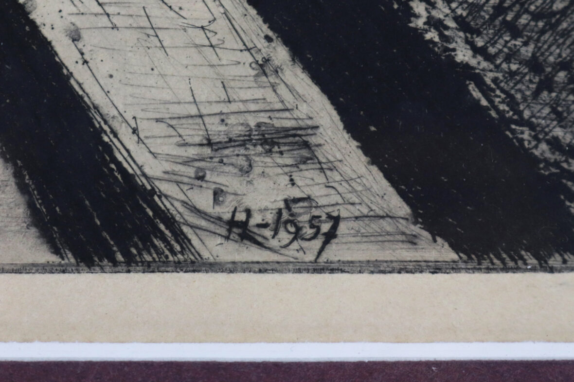 Gravure en noir. Signée, numérotée 10/25 et datée 1957 en bas à gauche.