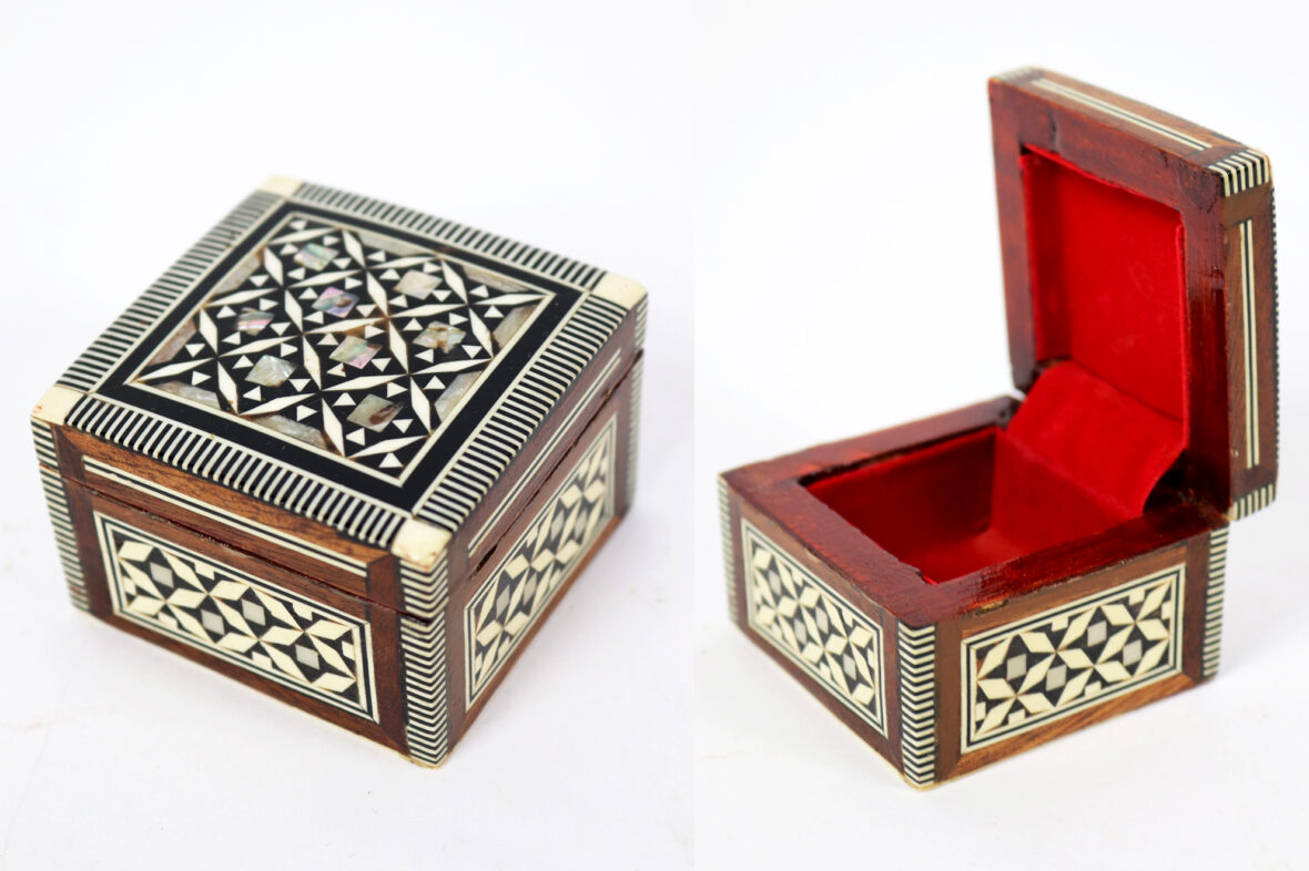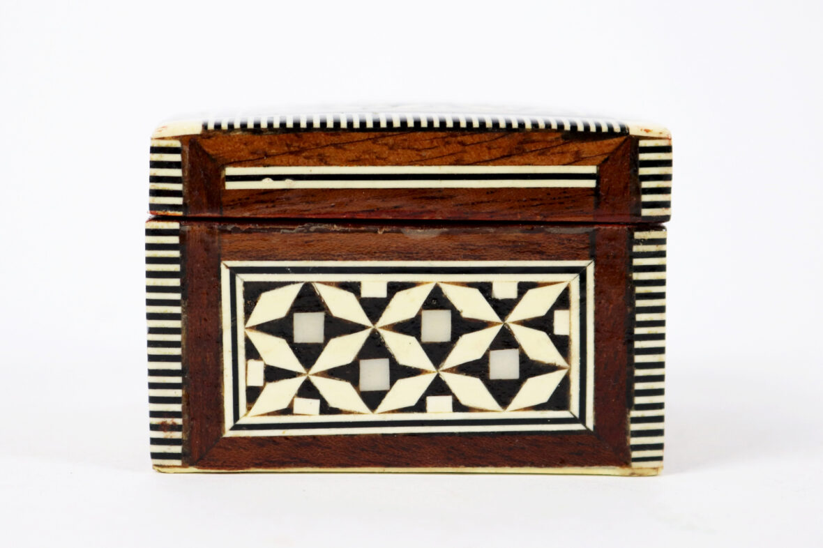 – Une petite boite en bois à décor marqueté. Travail syrien.