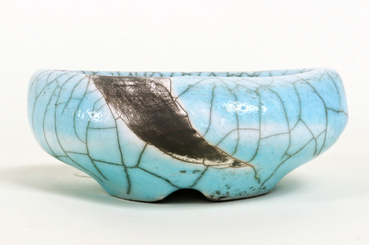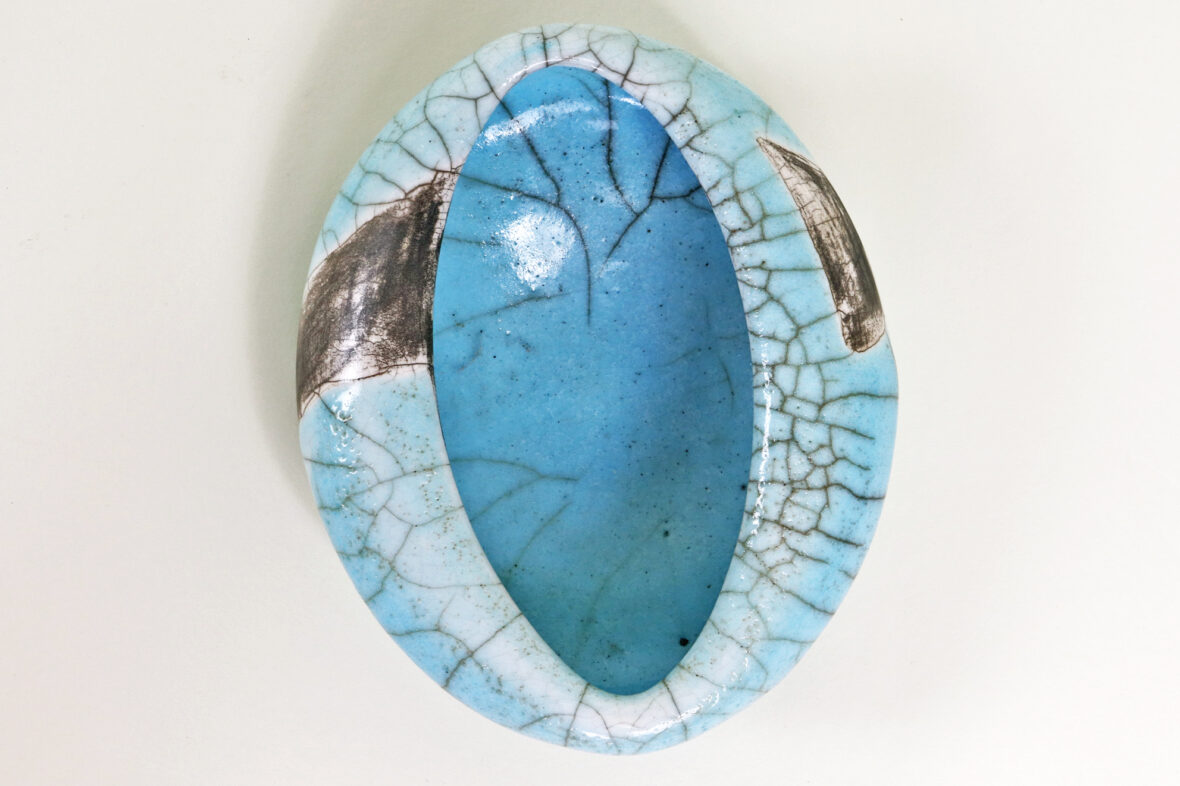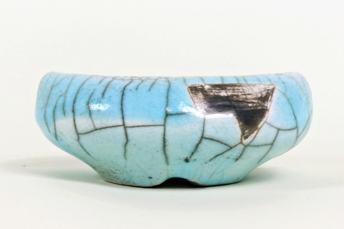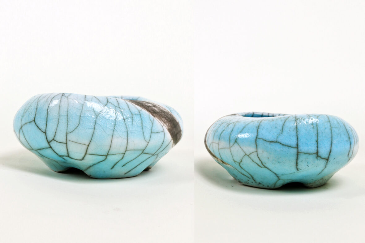 Ensemble comprenant un vide-poche en céramique émaillée bleue à décor de craquelures…