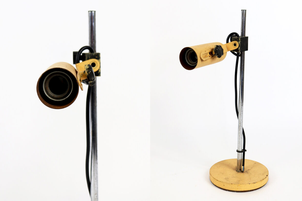 Ensemble comprenant : – une lampe de bureau de style industriel en métal laqué jaune…