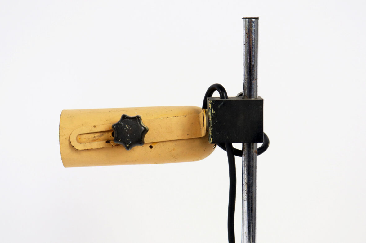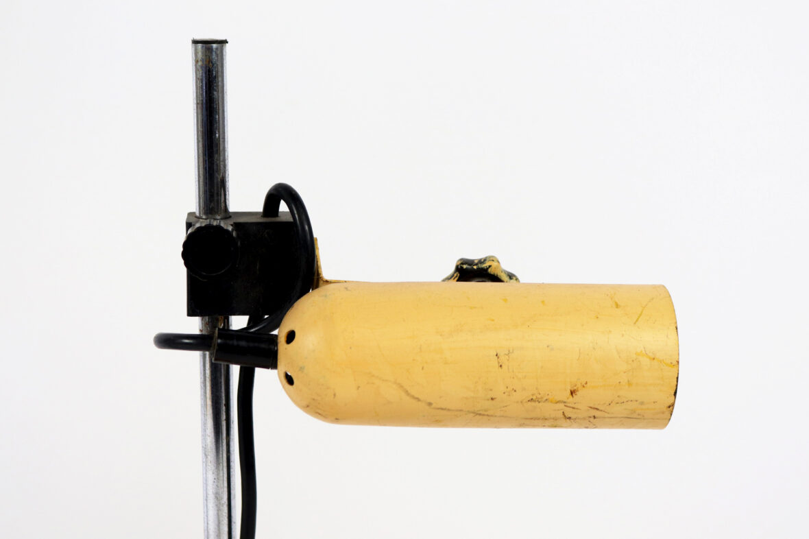 – une lampe de bureau de style industriel en métal laqué jaune orangé