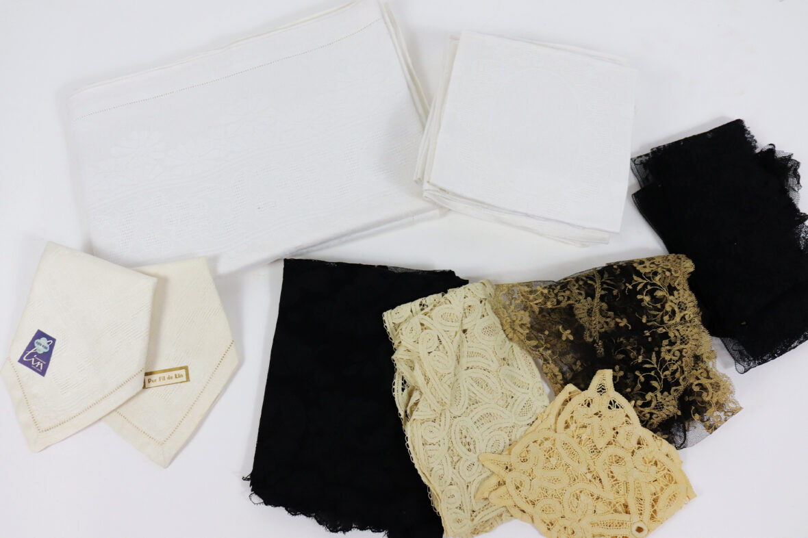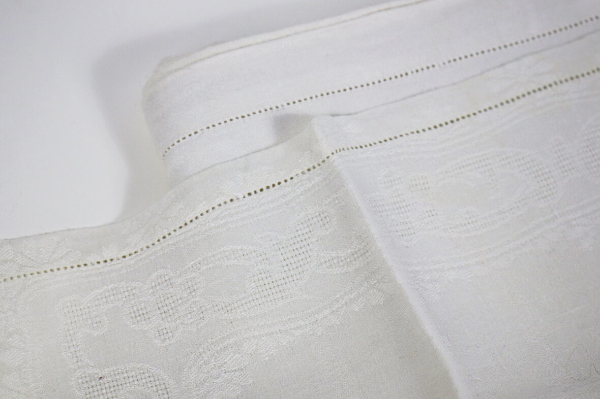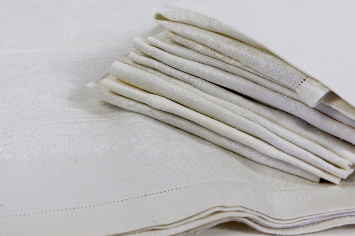 Ensemble comprenant une nappe et 10 serviettes de tables en coton blanc et 2 serviettes…