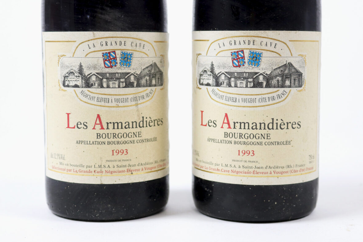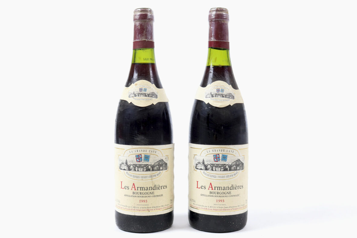 Ensemble de 2 bouteilles BOURGOGNE Les Armandières 1993. (LB).