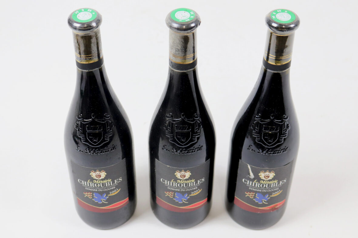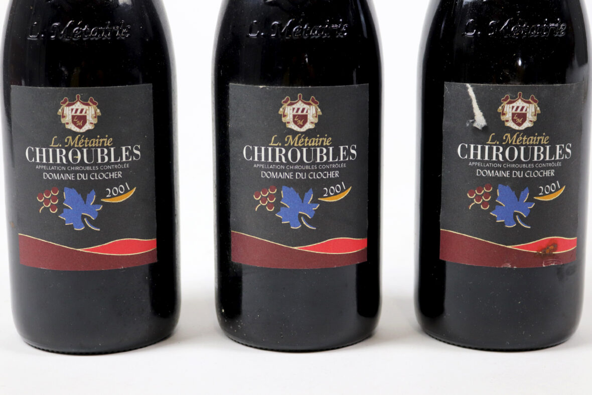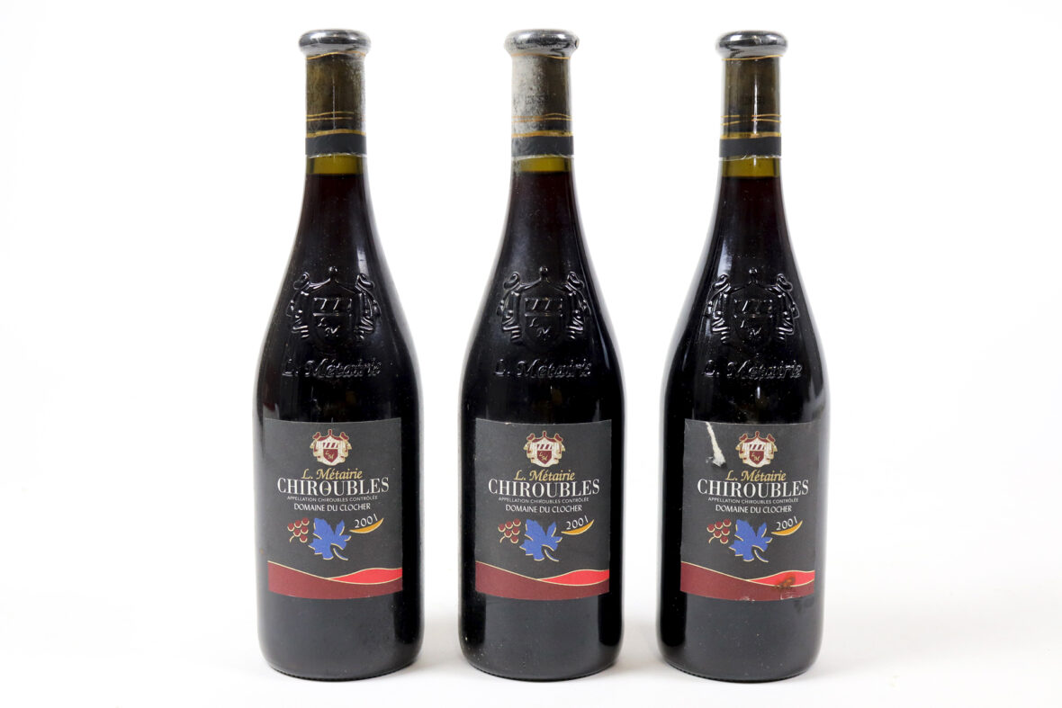 Ensemble de 3 bouteilles CHIROUBLES Domaine du Clocher 2001. (J).