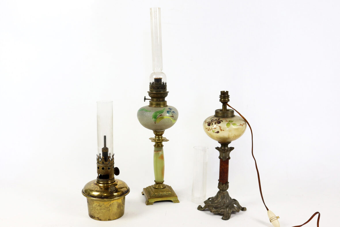 Ensemble de 3 lampes à pétroles, dont une électrifiée.
