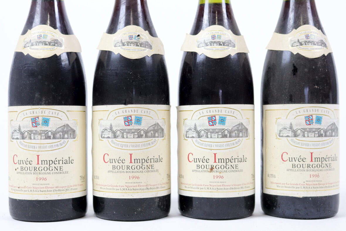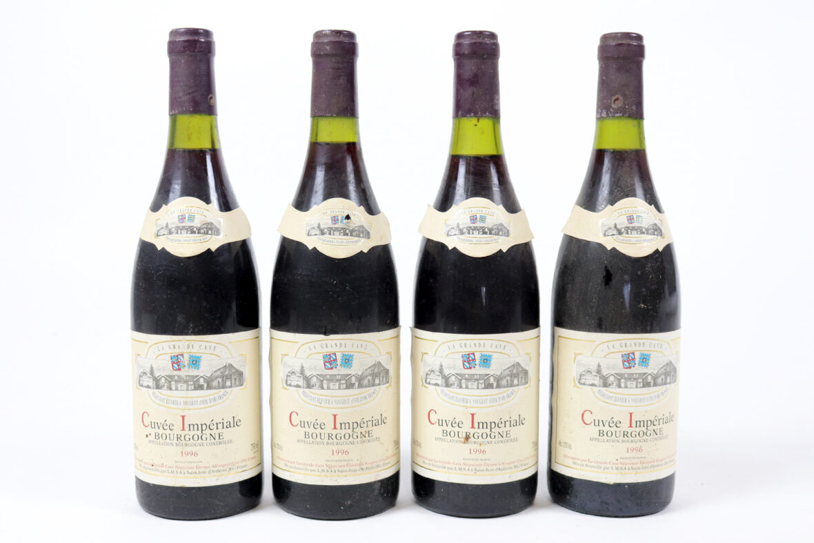 Ensemble de 4 bouteilles BOURGOGNE Cuvée Impériale 1996. La Grande cave à Vougeot Négociant. (LB).