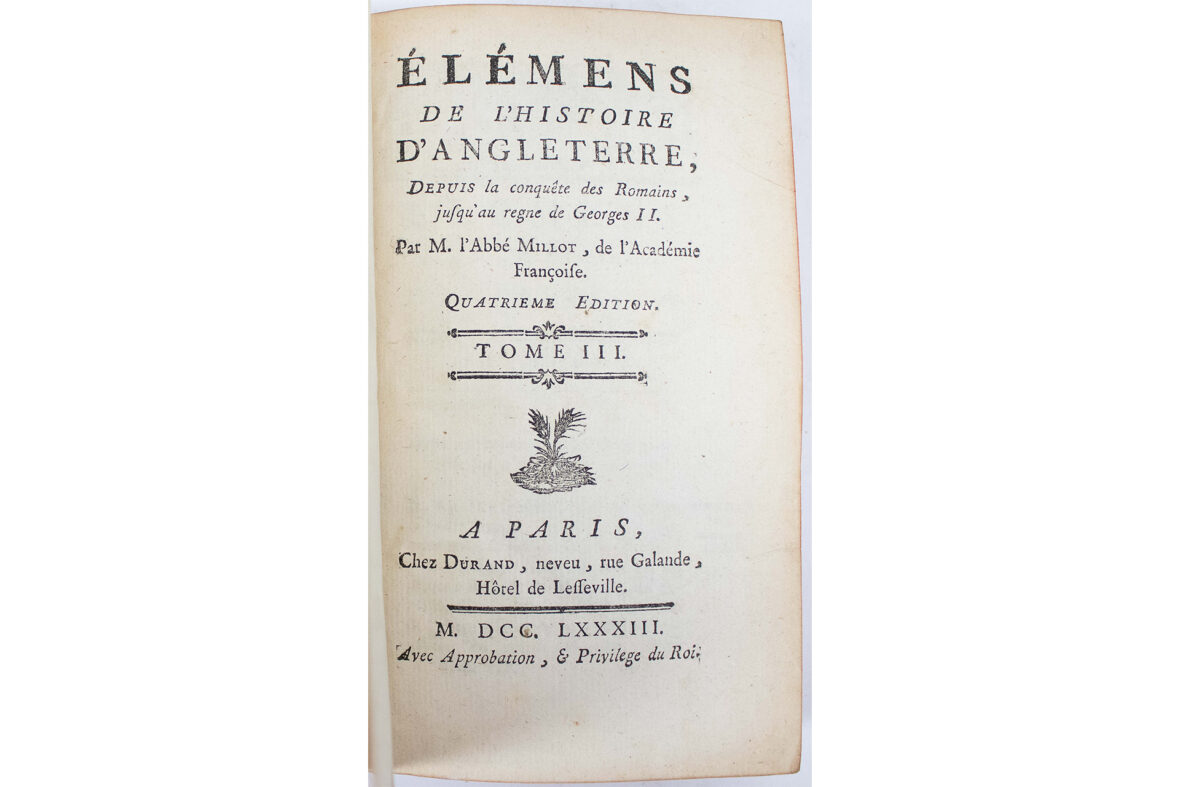 – Elémens de l’histoire d’Angleterre, tome III, 1783.