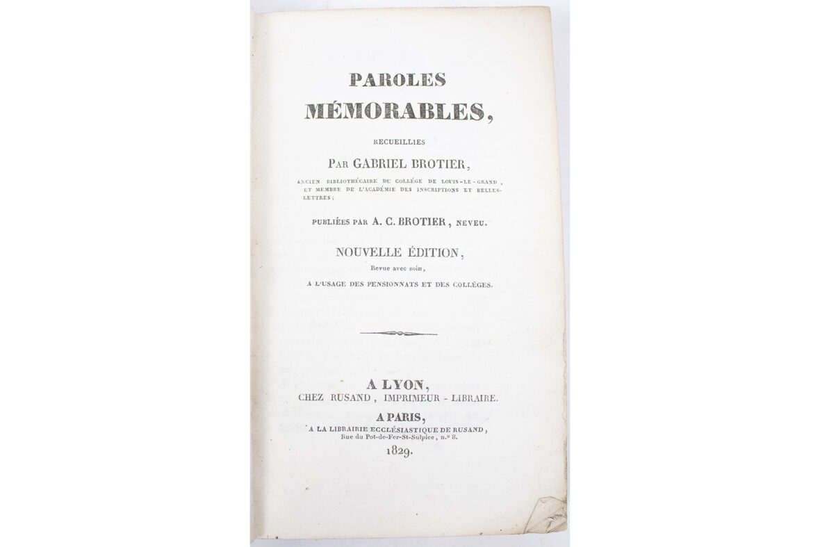 – Paroles mémorables recueillies par Gabriel Brotier, 1829.