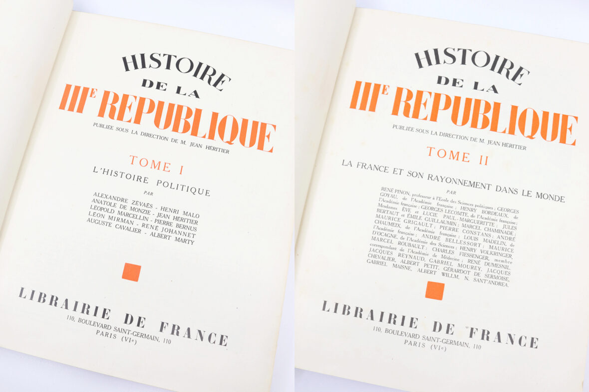 – Histoire de la IIIème République, tome I et II, Librairie de France.