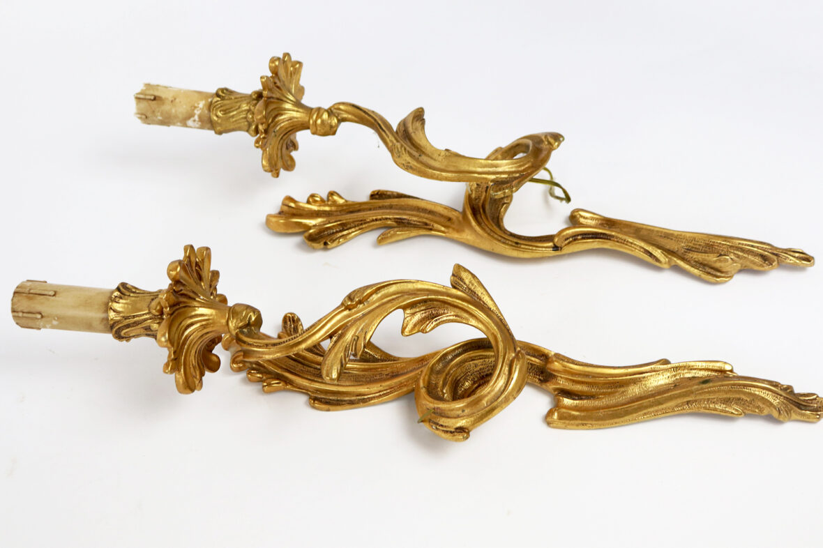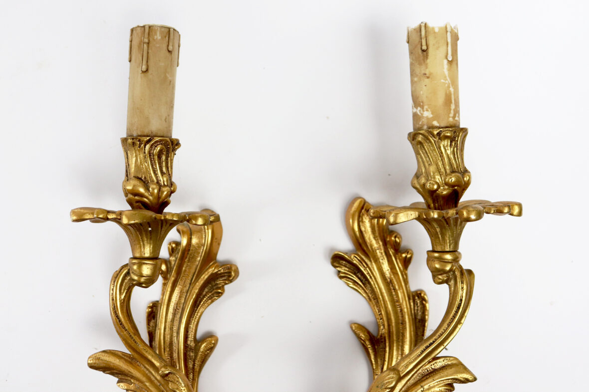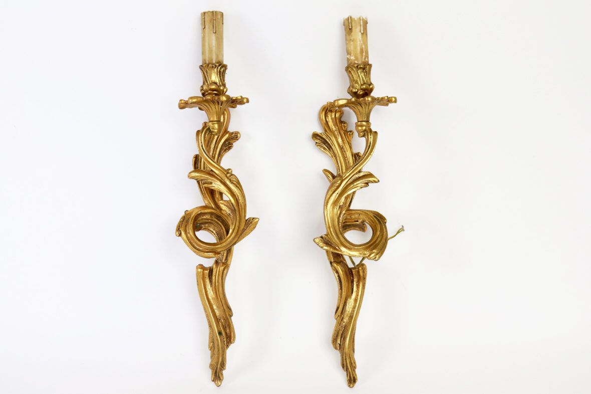 Ensemble de deux appliques murales en bronze doré à une lumière.