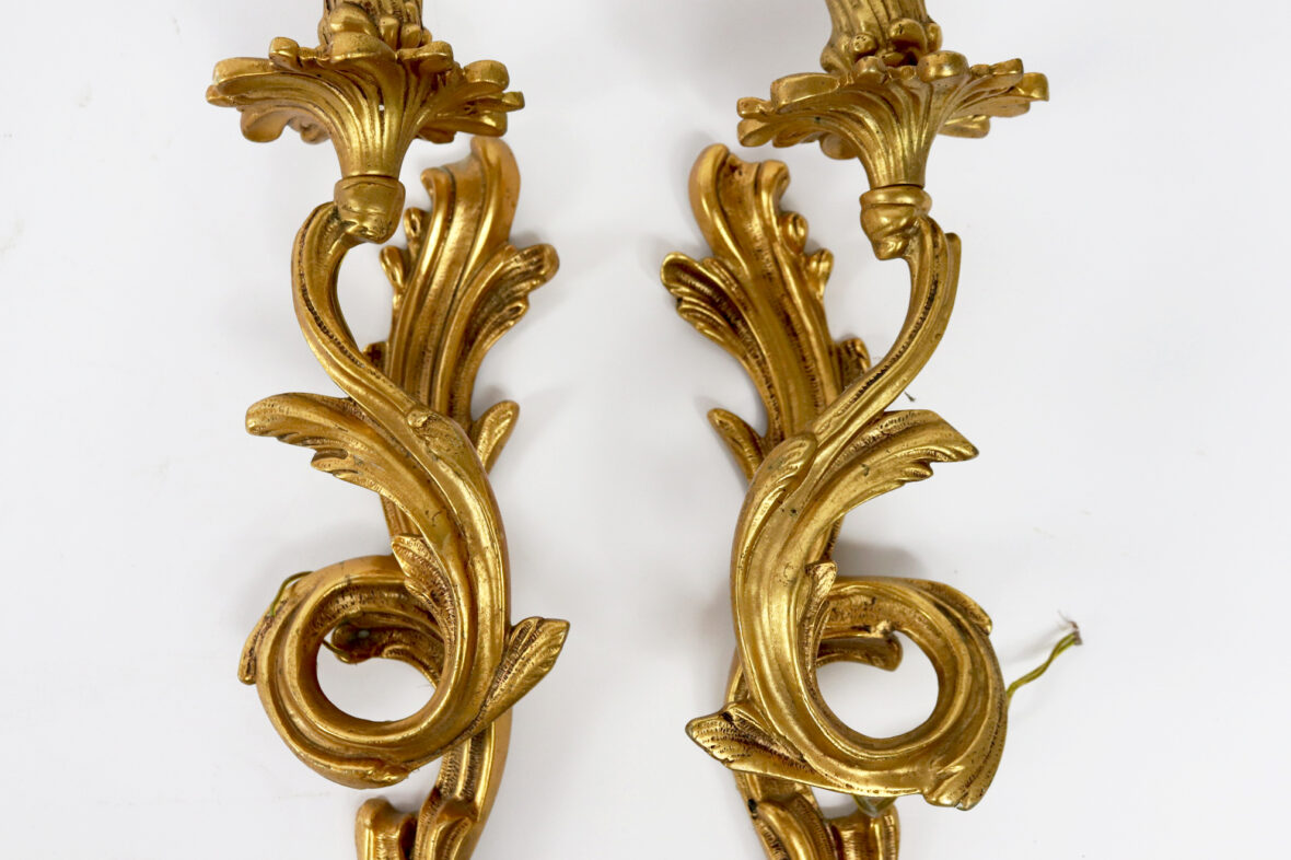 Ensemble de deux appliques murales en bronze doré à une lumière.