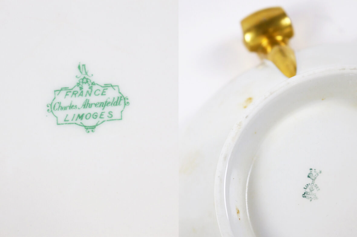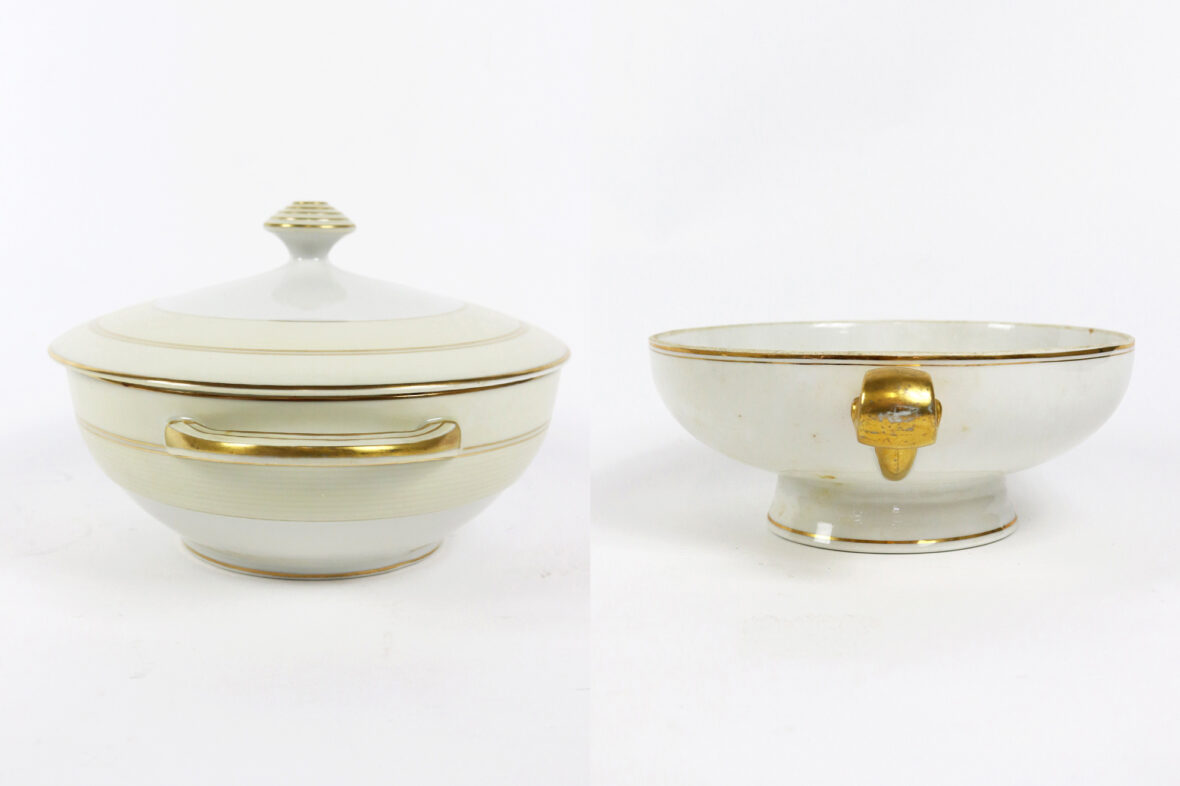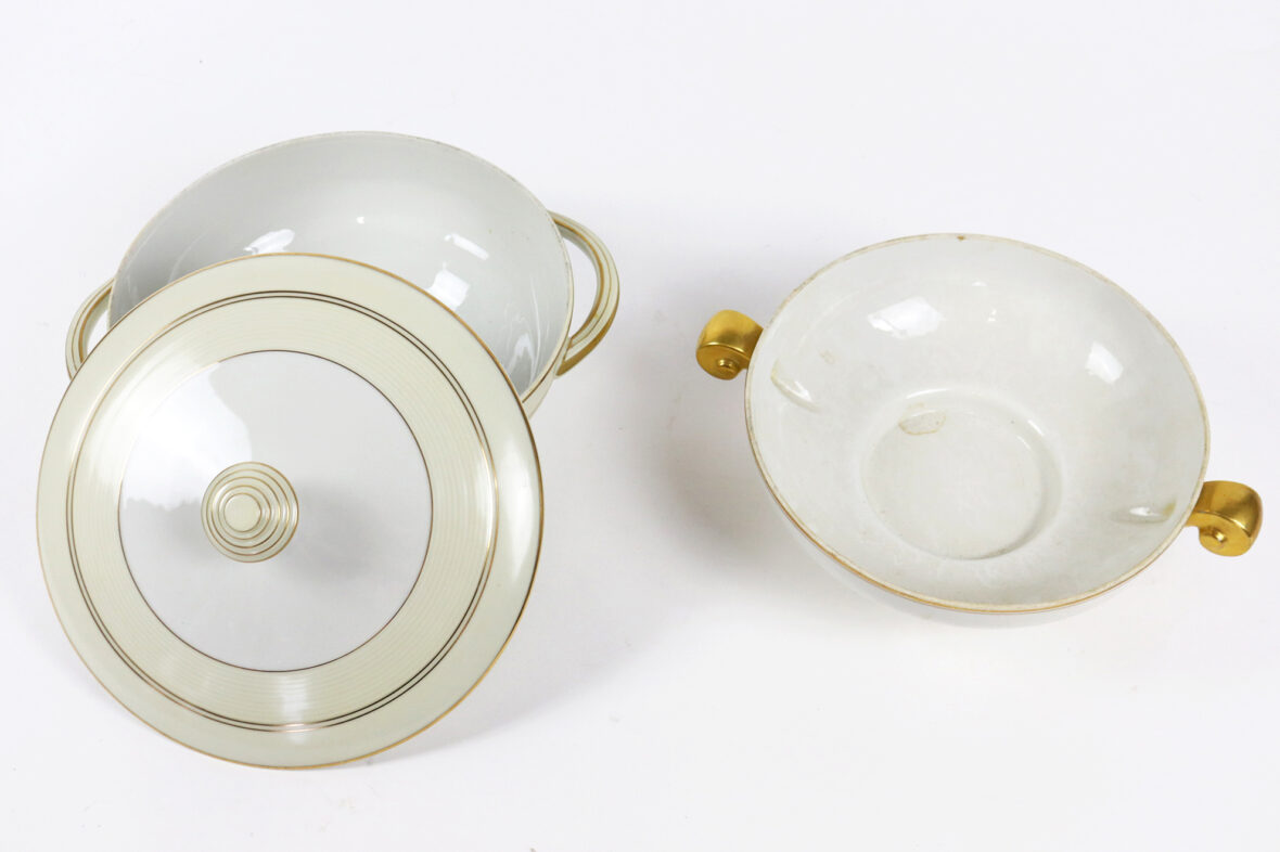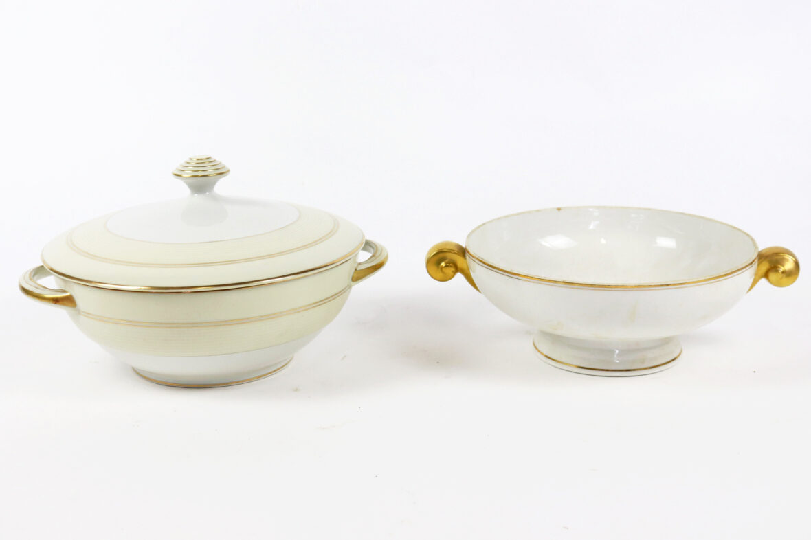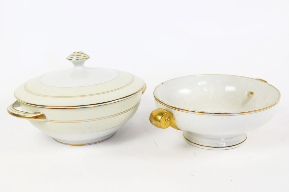 Ensemble de deux soupières en porcelaine de Limoges à décor de filets dorés.