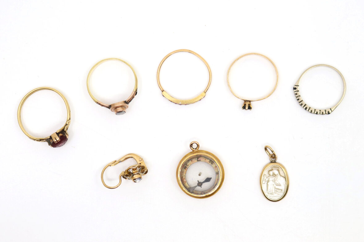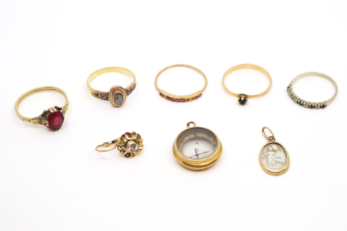 Ensemble de petits bijoux en or dont bagues, médaille, pendentif.