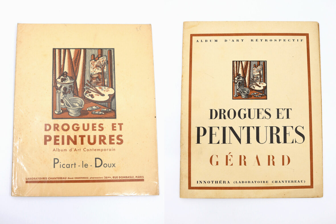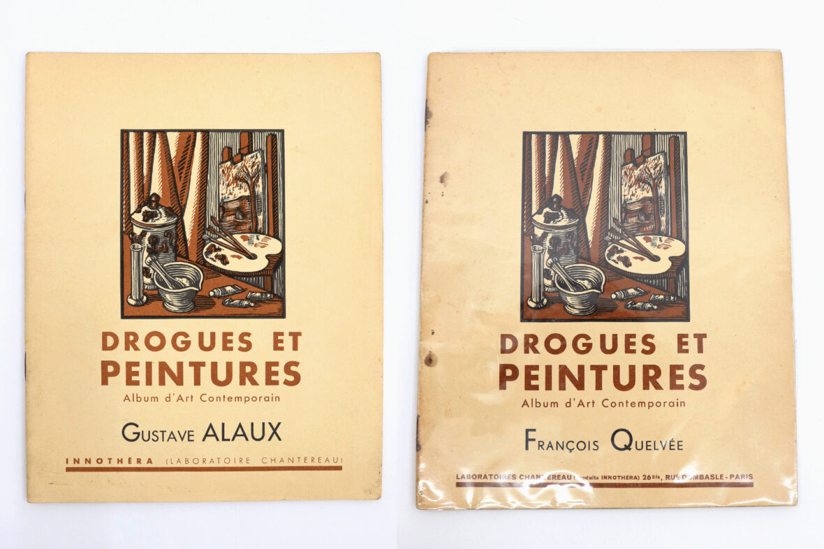 Ensemble de quatre albums d’Art Contemporain « Drogues et peintures » distribués par le laboratoire Chantereau : Picart-Le-Doux, Gérard, Gustave Alaux & François Quelvée.