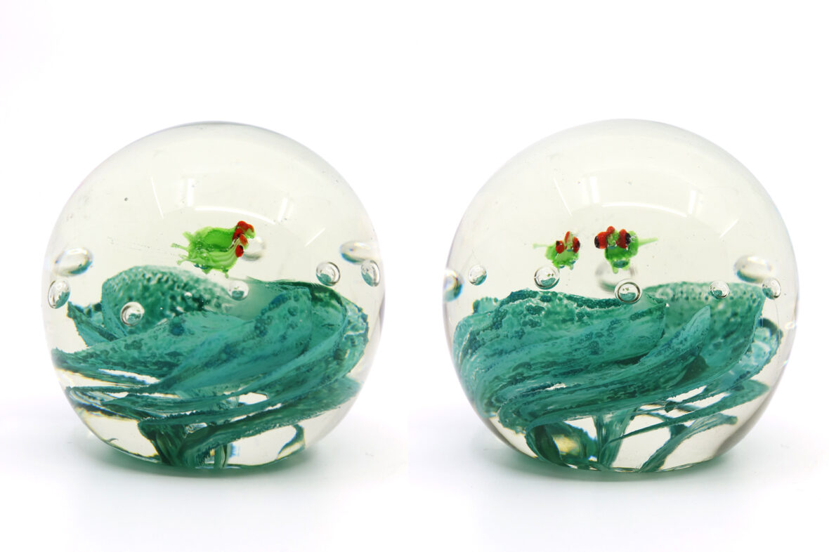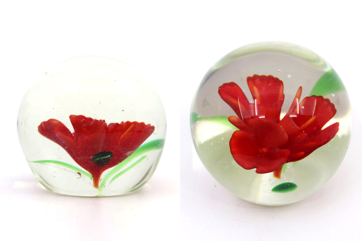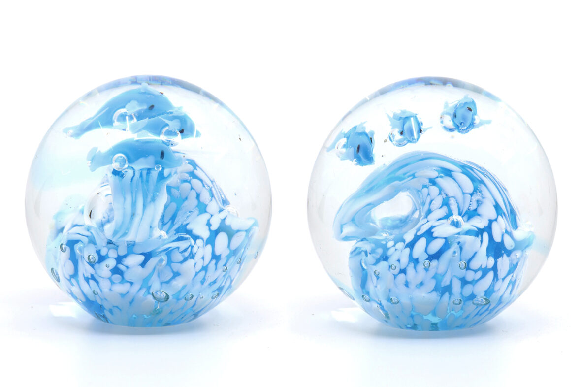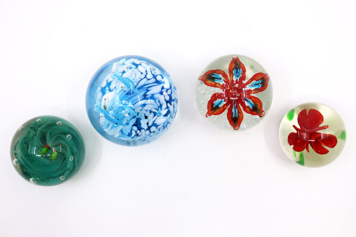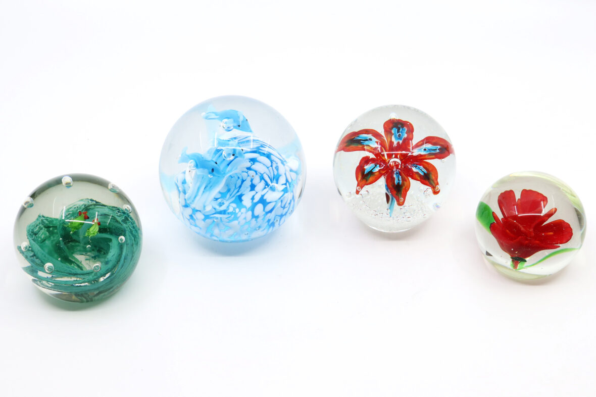 Ensemble de quatre sulfures presse-papier. Haut. : 5 cm, 6,5 cm, 7 cm et 8 cm