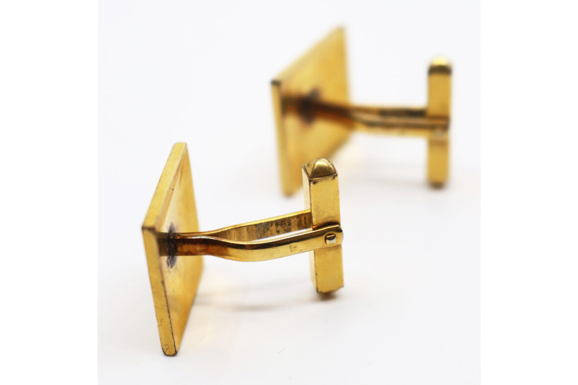 Ensemble de trois paires de boutons de manchettes en métal plaqué or à motifs guillochés.