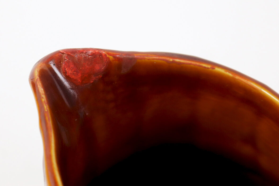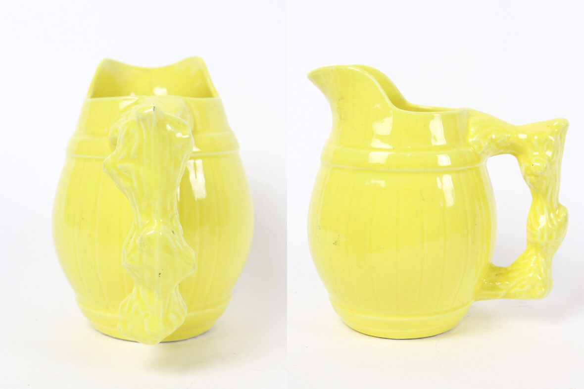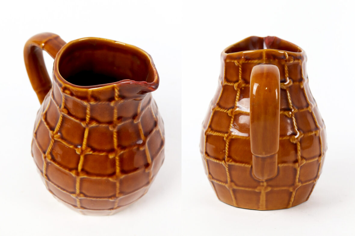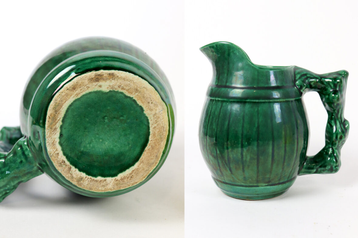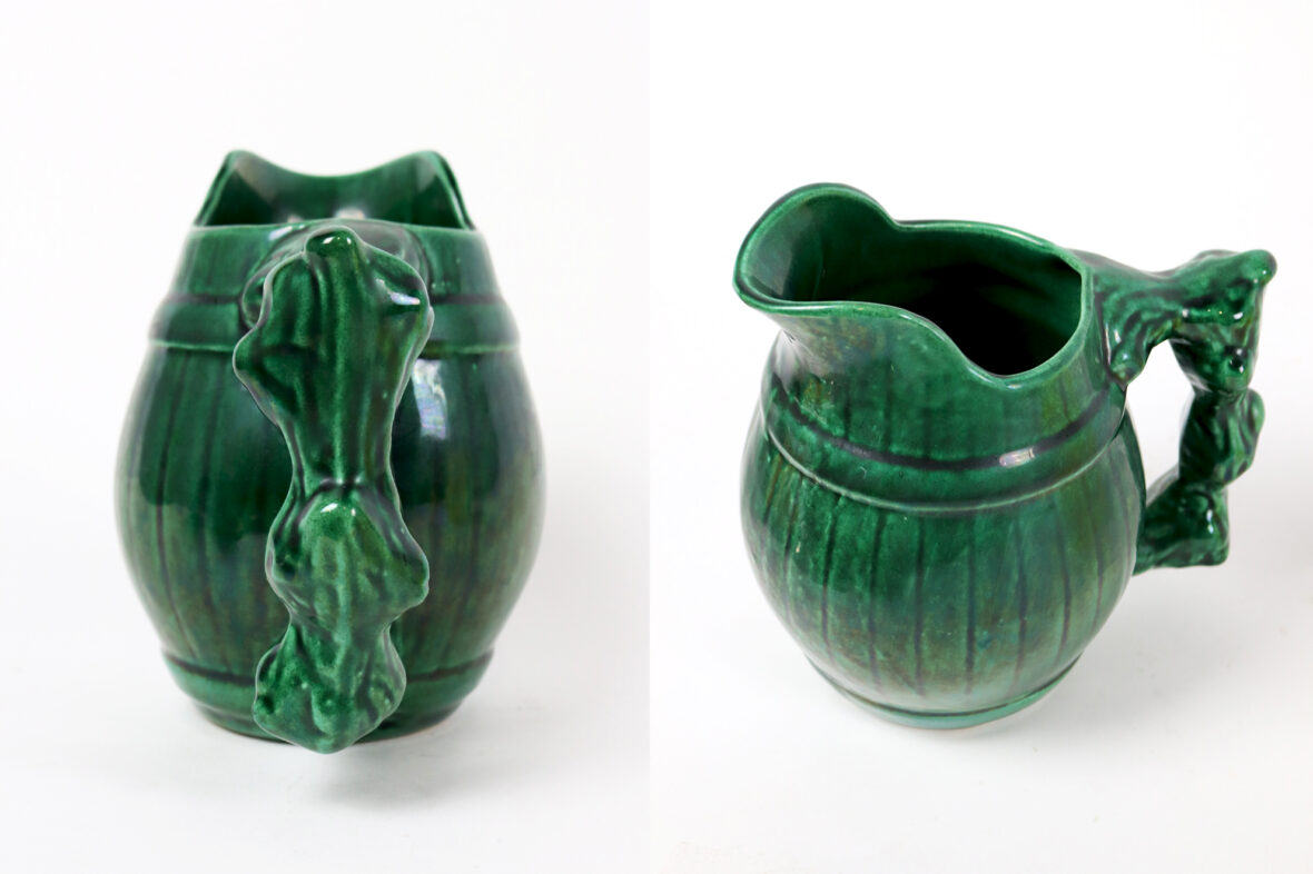 Ensemble de trois pichets en céramique jaune, vert et marron, dont Saint Clément et Longchamp.
