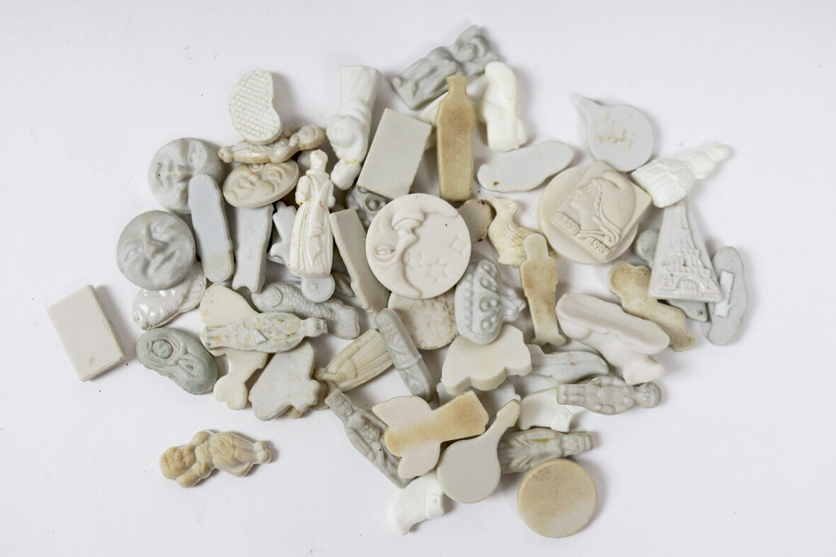On y joint un important ensemble de fèves en biscuit de porcelaine et divers.