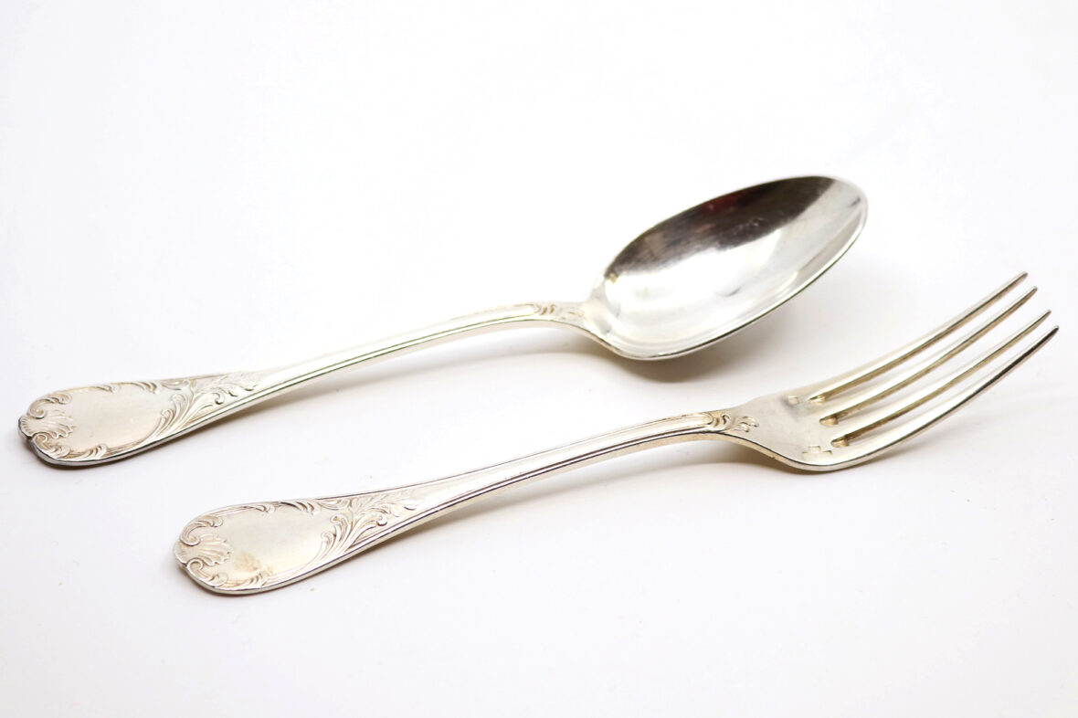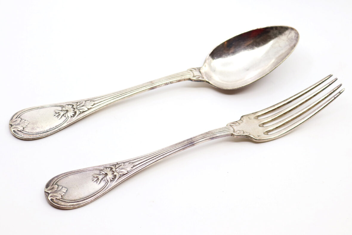 Ensemble en métal argenté comprenant : – un couvert de baptême à décor de feuillages…