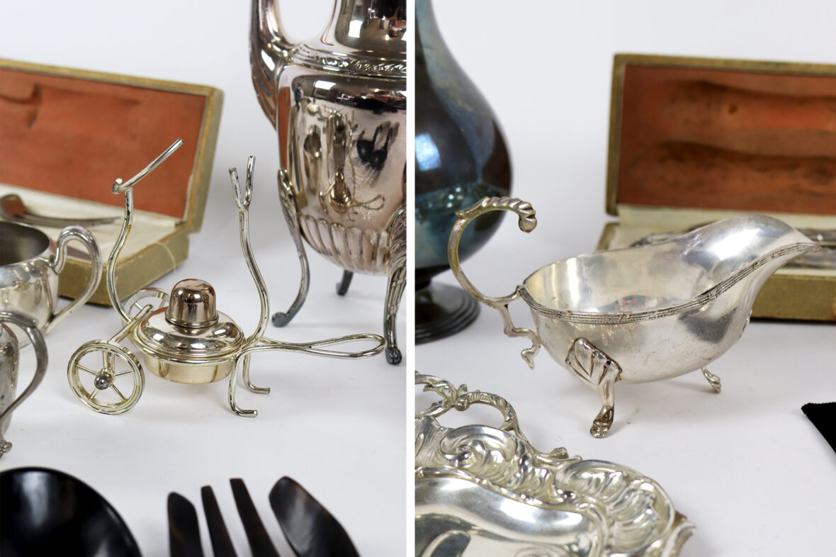 Ensemble en métal argenté comprenant :