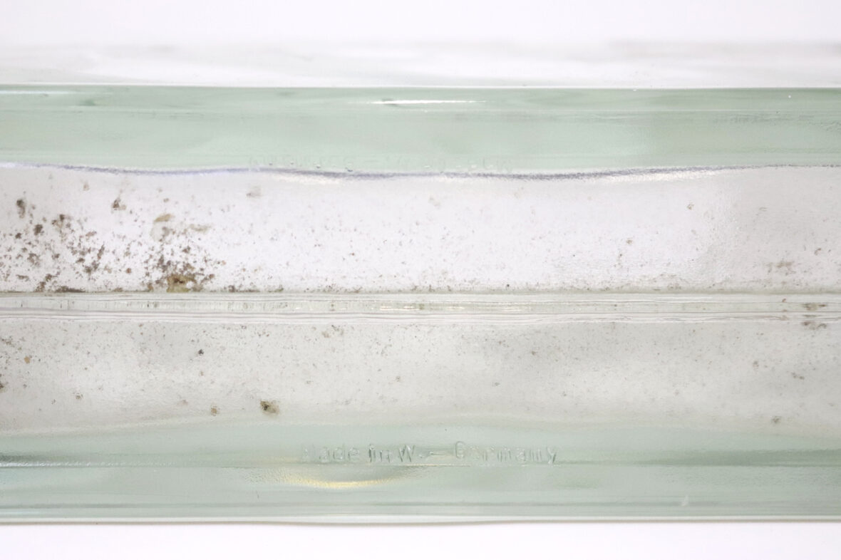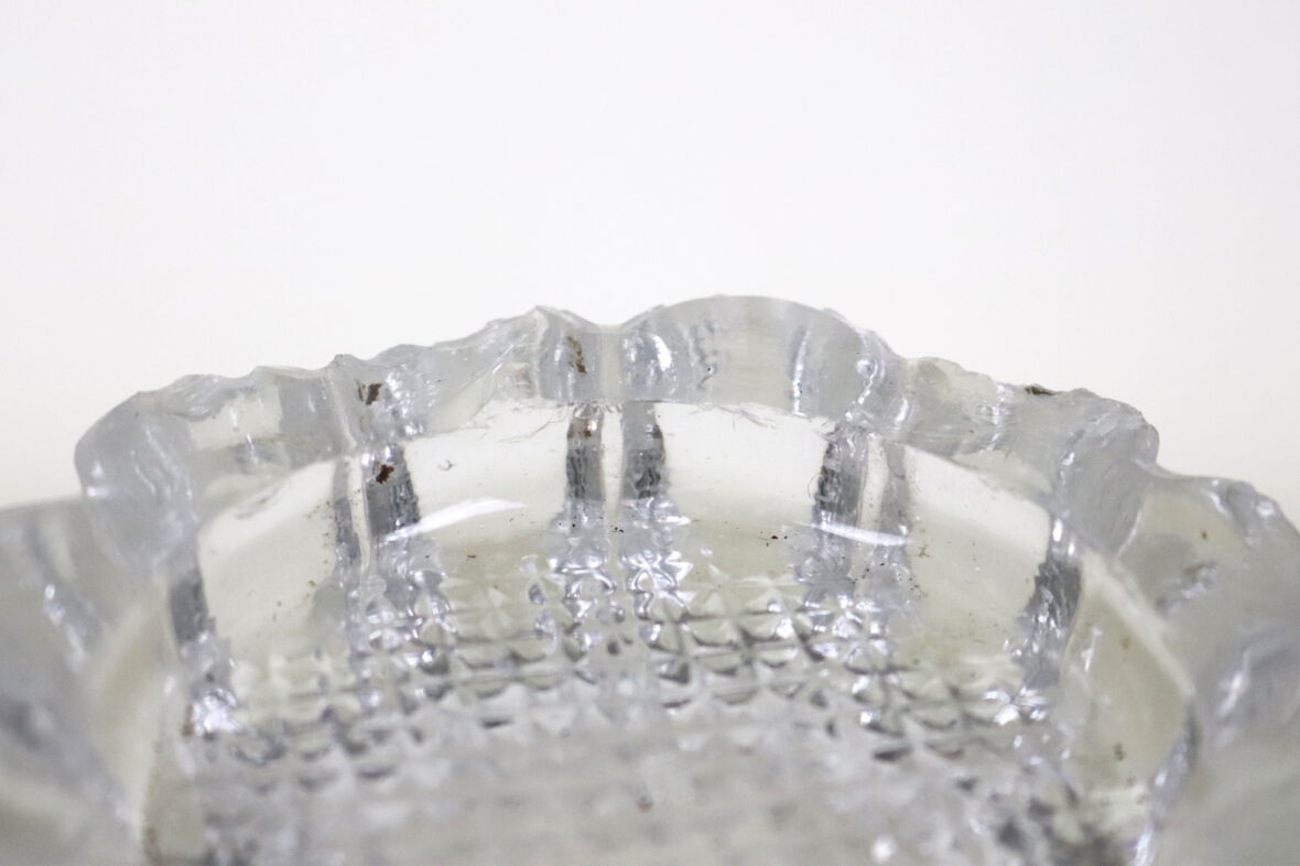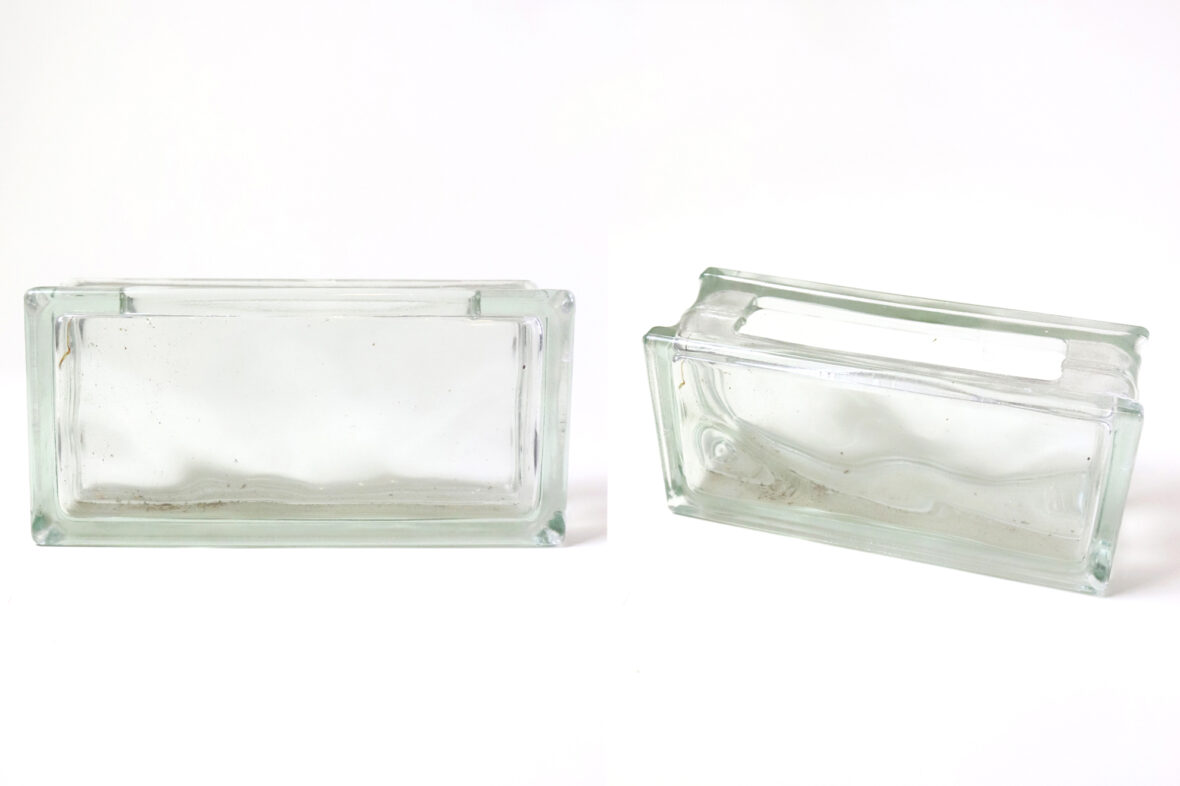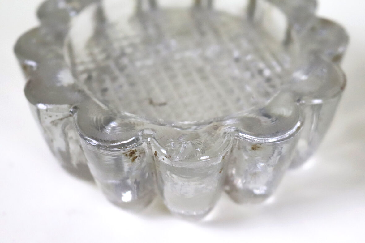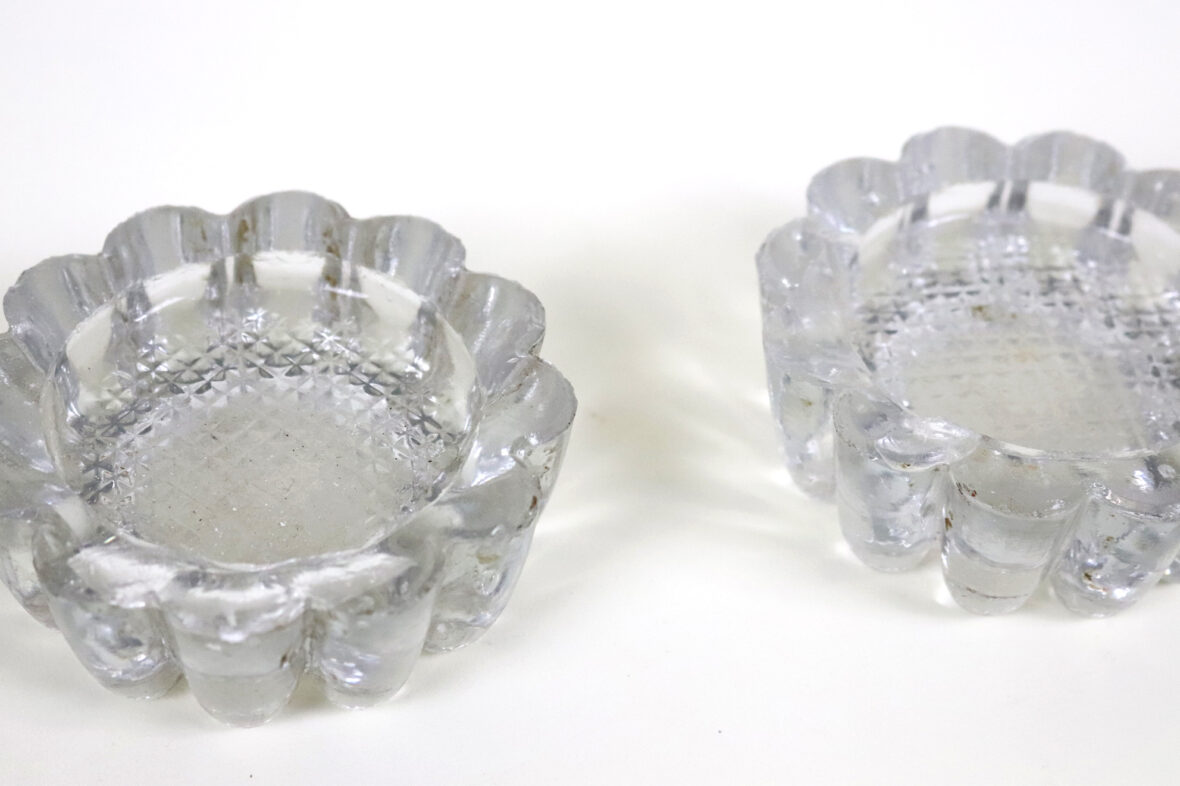 Ensemble en verre moulé comprenant un vase rectangulaire et quatre petits bougeoirs à décor de godrons (égrenures).