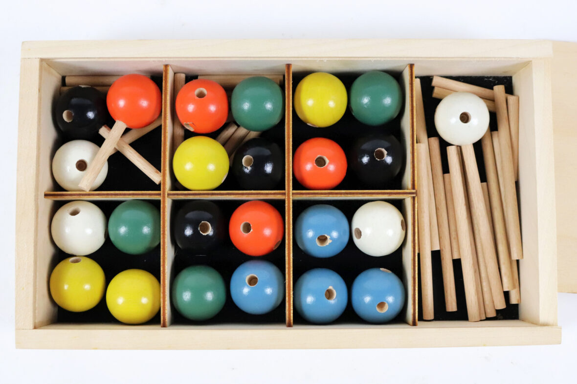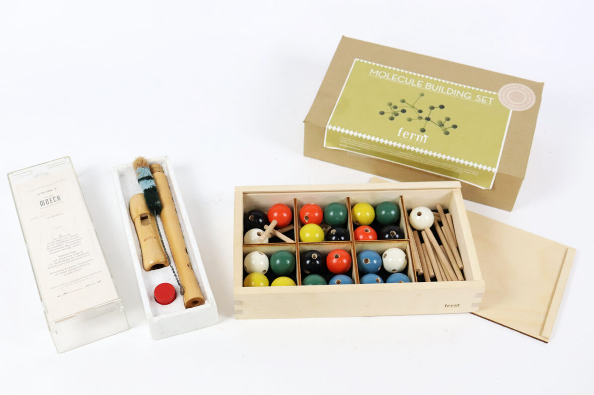 Ensemble pédagogique pour modéliser des molécules à partir d’atomes figurés par des sphères en plastique de la marque Fermliving.