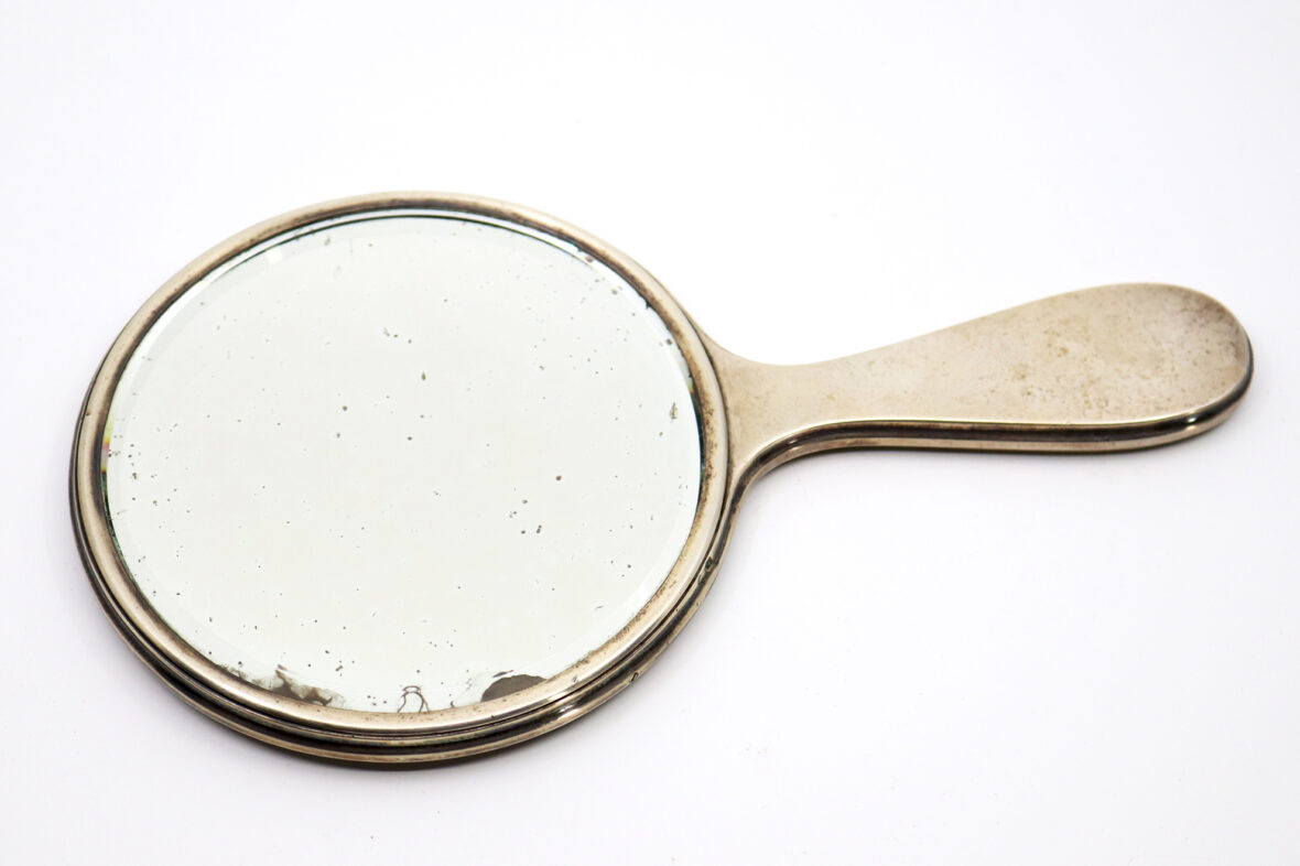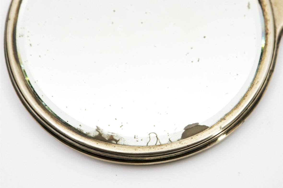 Face à main en argent à décor de godrons. Haut. : 23 cm