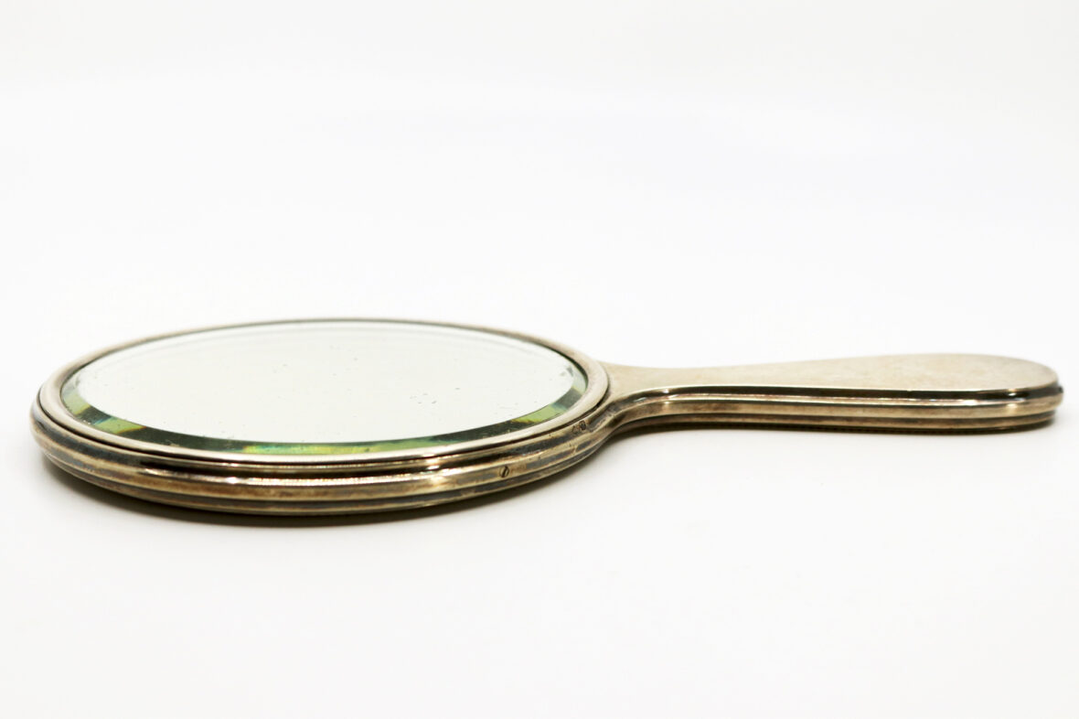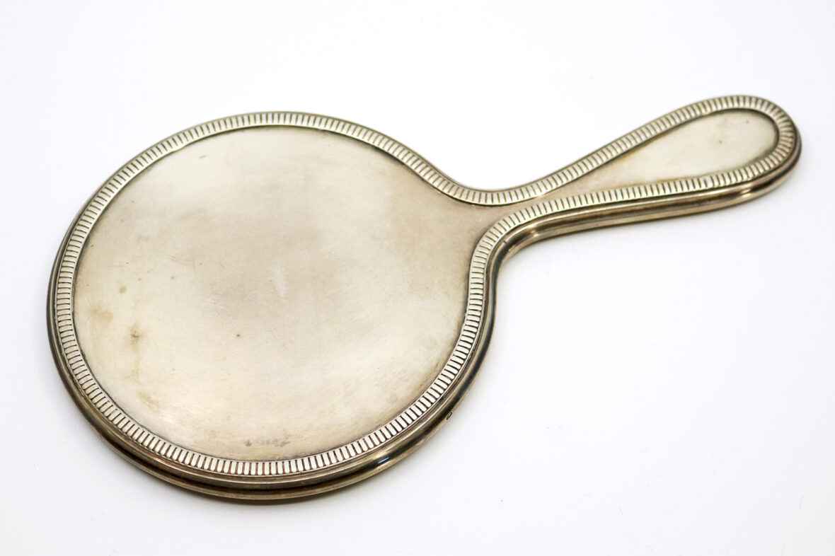 Face à main en argent à décor de godrons.